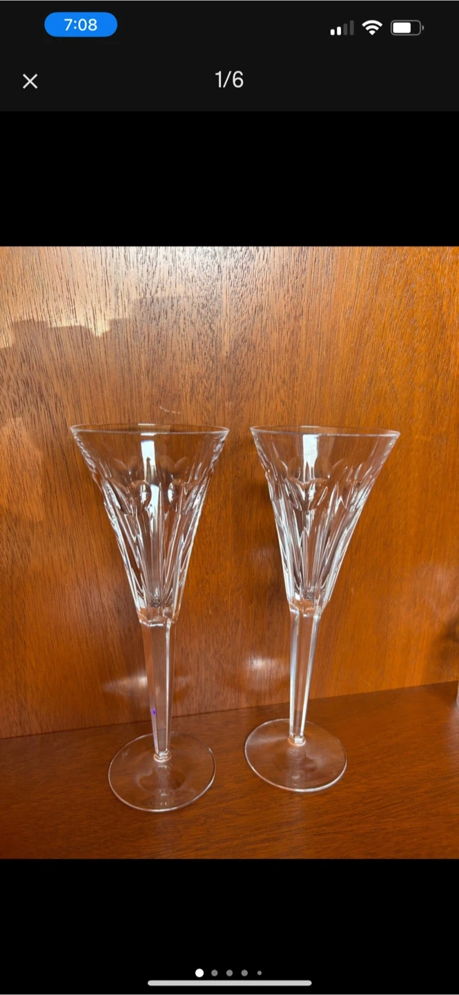 Selling a beautiful set of two Waterford crystal champagne flutes. They feature a classic design and are in great condition. Perfect for celebrations or adding a touch of elegance to your home!