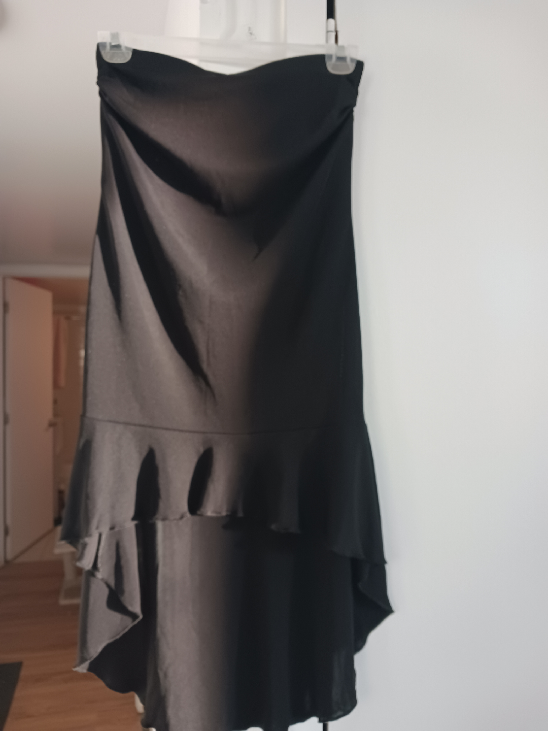 Selling a cute black strapless dress or skirt It features a ruffle detail at the bottom. Perfect for a night out or a special occasion