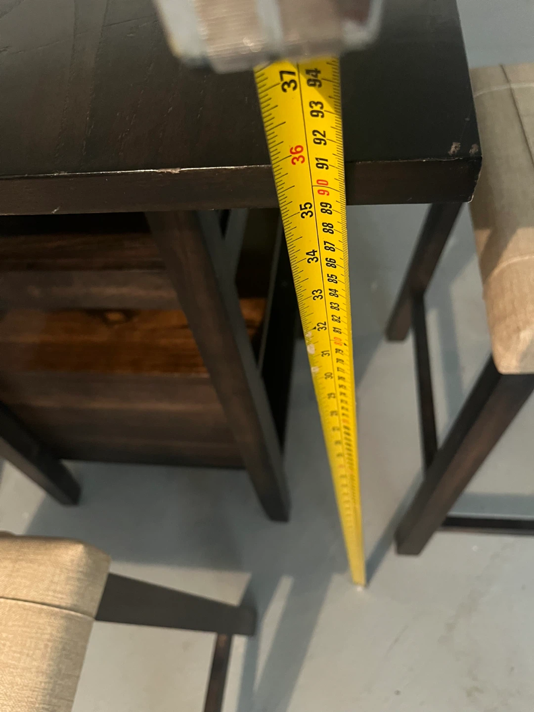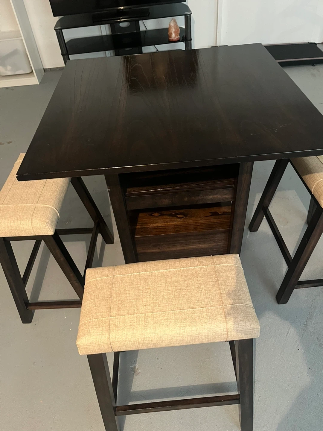 Selling a dark brown bar height table that comes with 4 stools.
