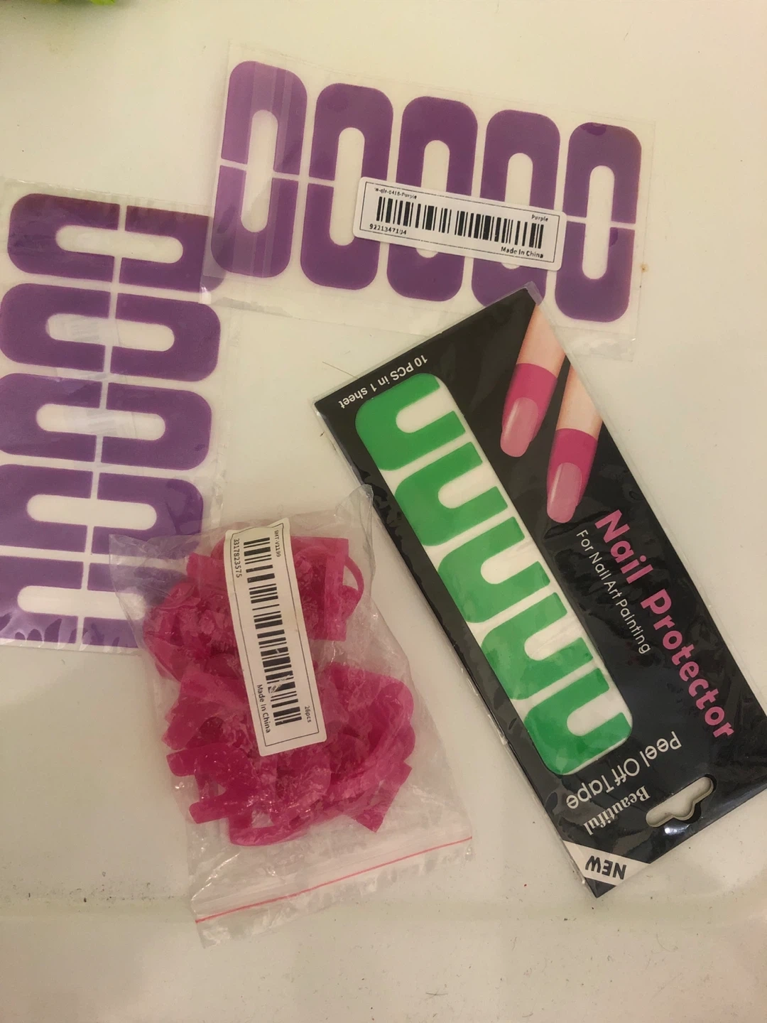 New nail protector for nail art painting! Peel off tape, 10 pieces in 1 sheet. Also includes purple nail protectors and pink nail protectors