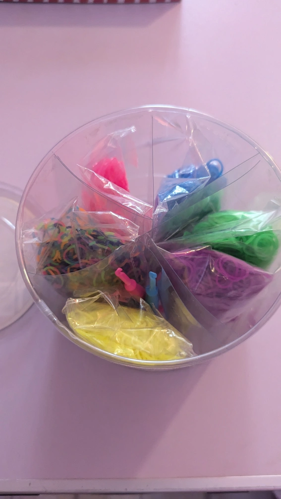 Selling a Rainbow Loom Neon & Tie Dye Mega Bucket of Bands! This set includes rubber bands, 2 pick tools, . It's perfect for creating fun and colorful bracelets and accessories . this is an incomplete set