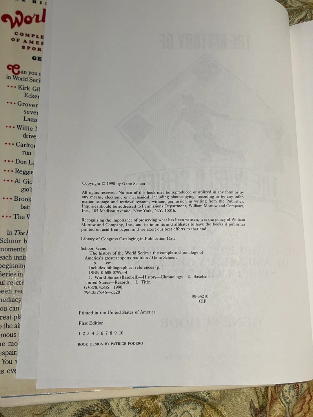 Selling a copy of "The History of the World Series" by Gene Schoor! It's a complete chronology of America's greatest sports tradition. Copyright 1990 by Gene Schoor, first edition