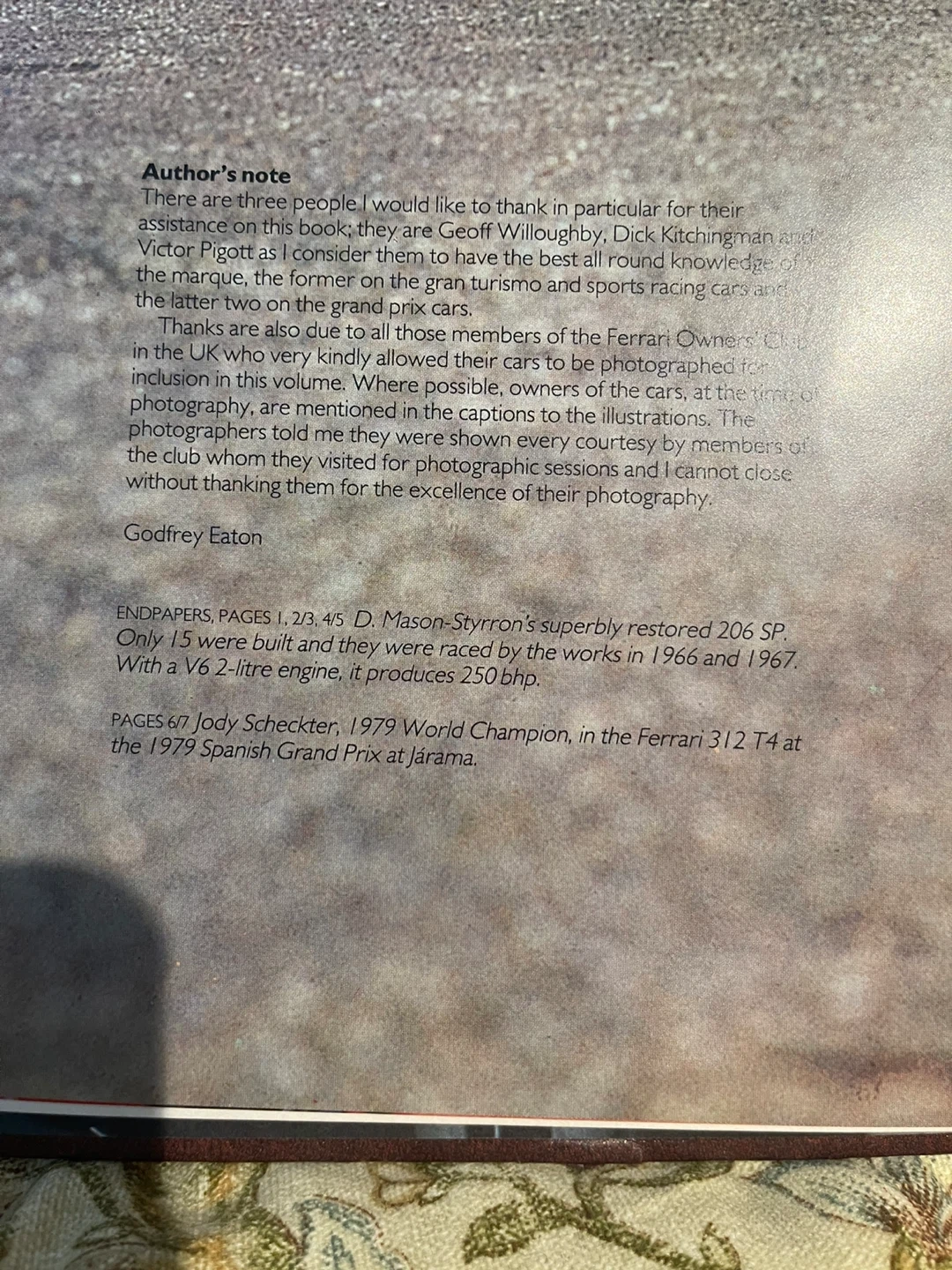 Selling a copy of Great Marques Ferrari by Godfrey Eaton. It's a fascinating look into the history and engineering of Ferrari cars. The book includes chapters on various engine types and racing drivers. A must-have for any Ferrari enthusiast!