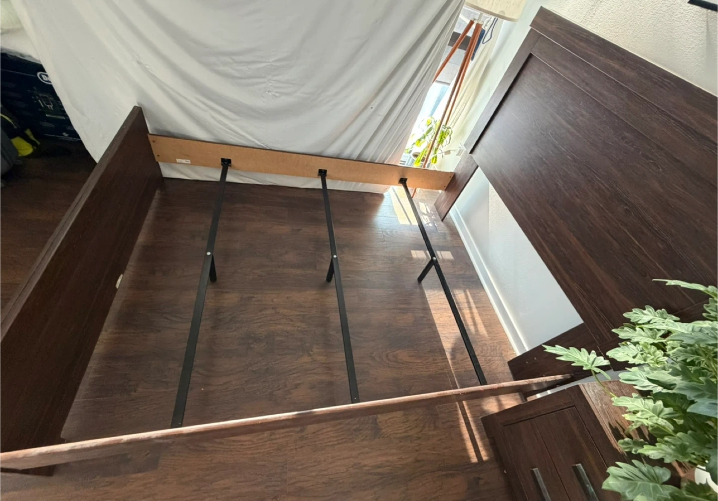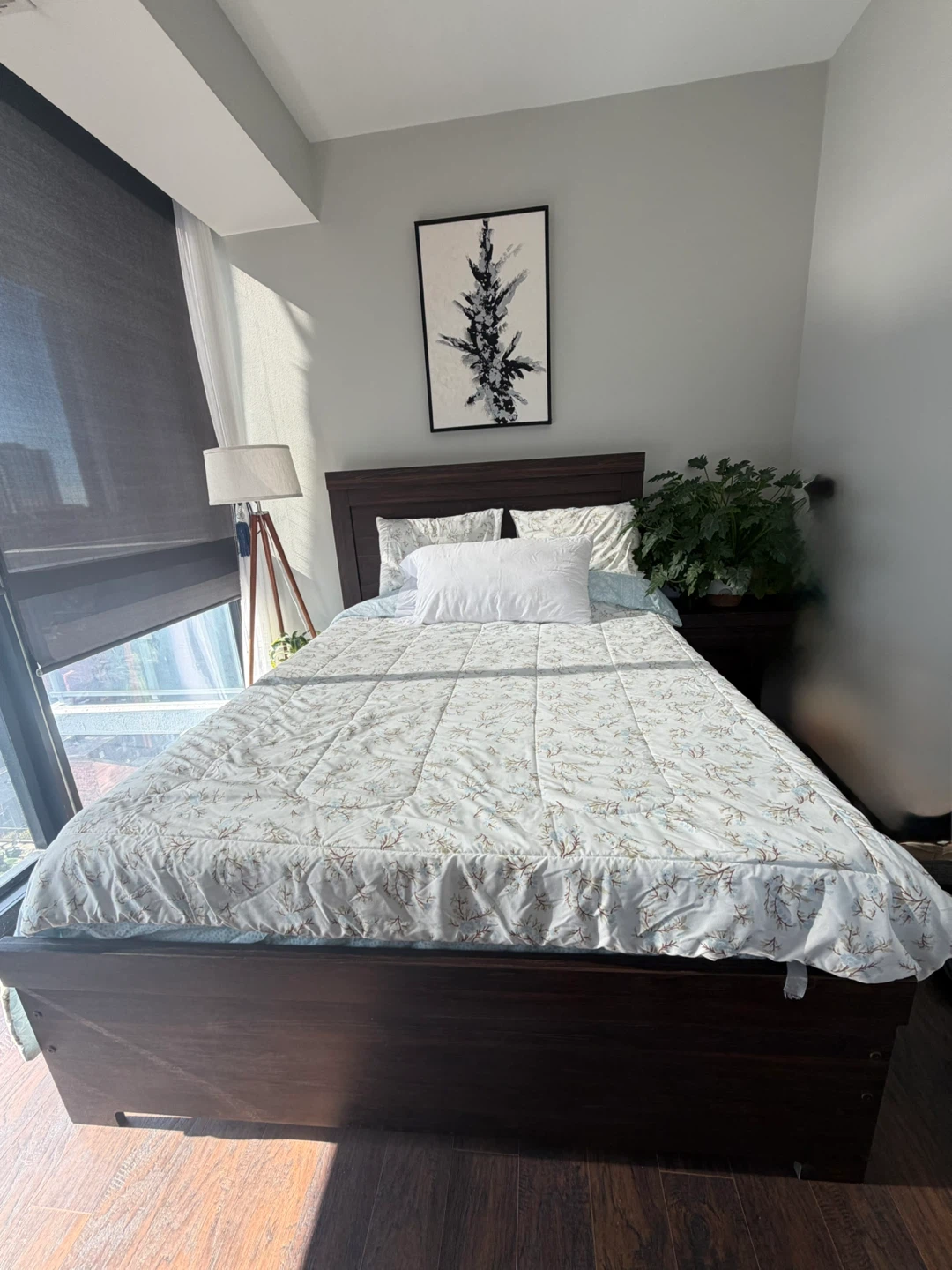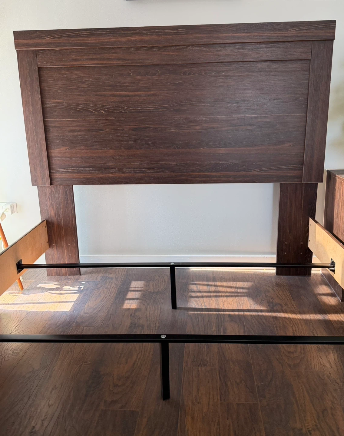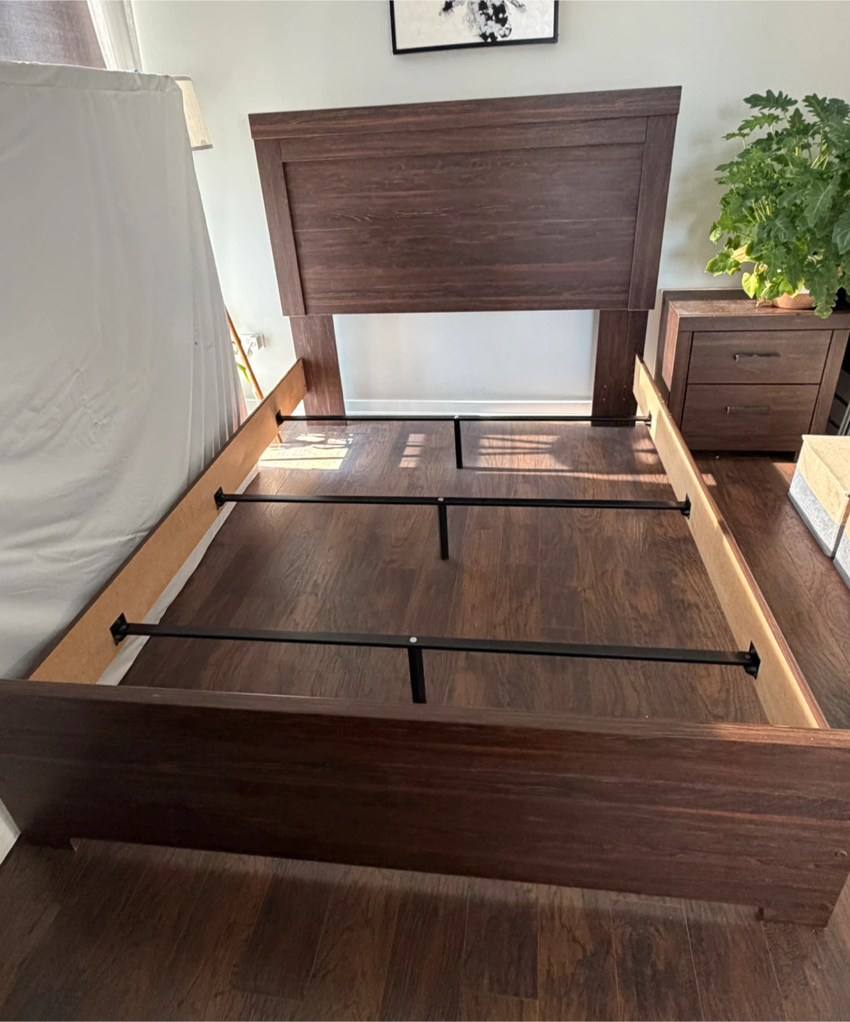 Dark Wood Sturdy Queen Bed Frame with box spring