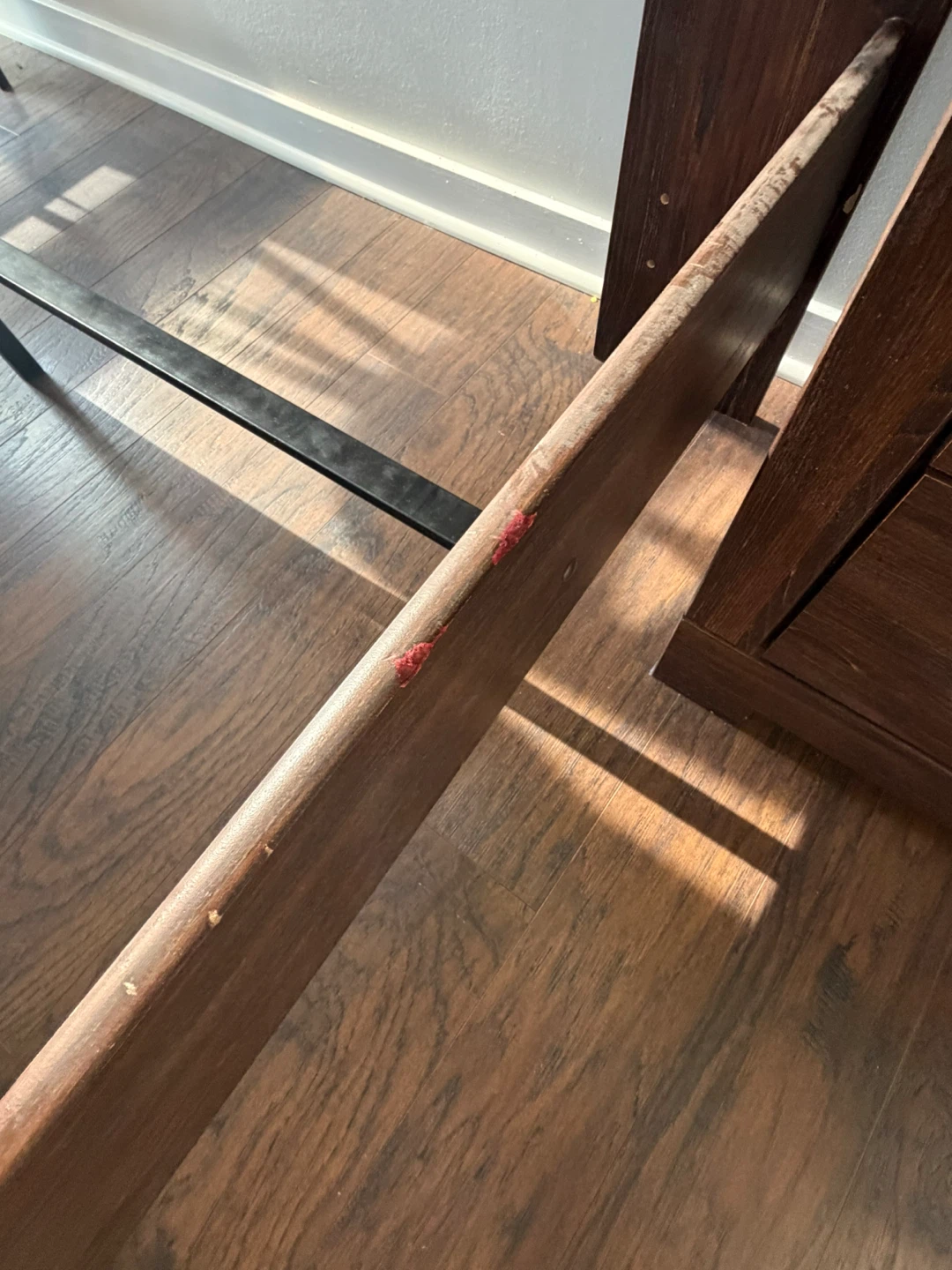Selling a dark wood sturdy queen - bed frame with headboard and 8” height box spring as well included. It's in used condition, with some signs of wear, as pictured. From a pet-free and smoke-free household.