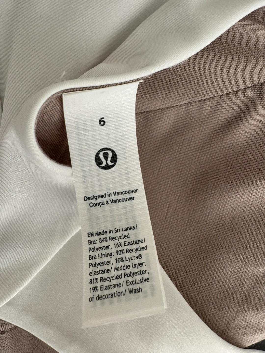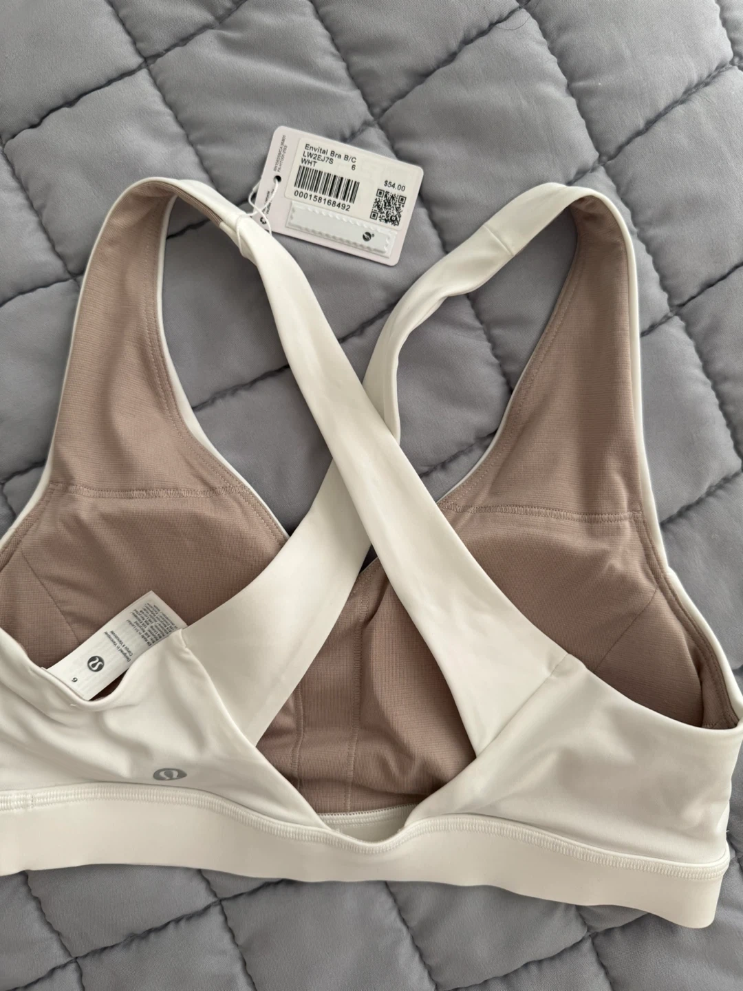 Selling a Lululemon Envital Bra B/C in size 6. It's a lovely white colour. The bra is made with 84% recycled polyester and 16% elastane. The lining is 90% recycled polyester and 10% lycra. Originally bought for $54