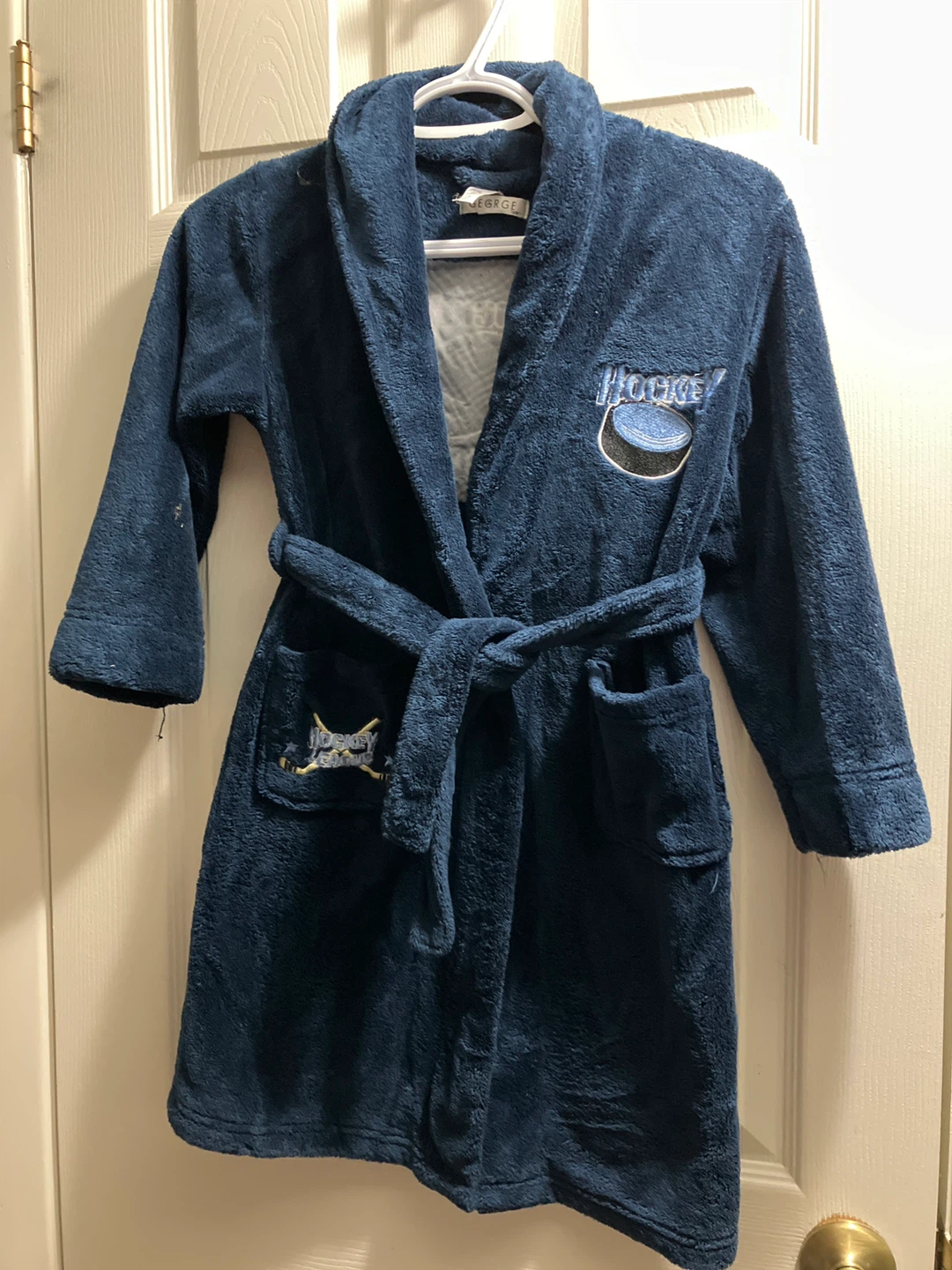 Keep your little hockey fan cozy with this George brand robe! It's a size 6x and features a fun hockey design. Perfect for after bath time or lounging around the house