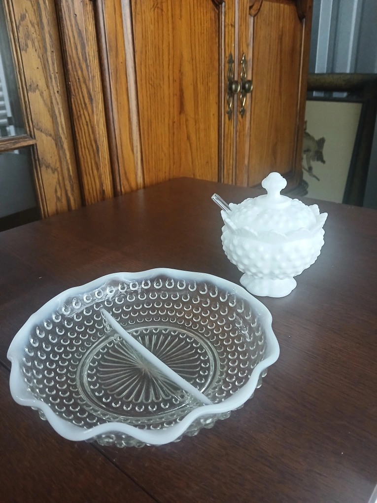 Vintage Milk Glass Candy Dish & Sugar Bowl Set