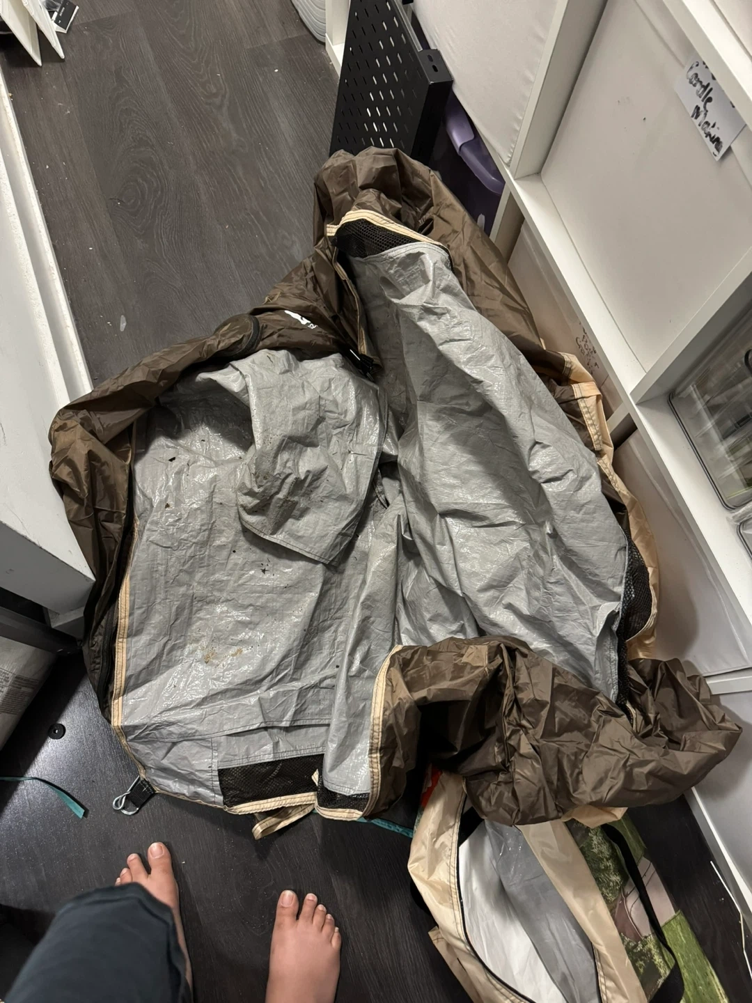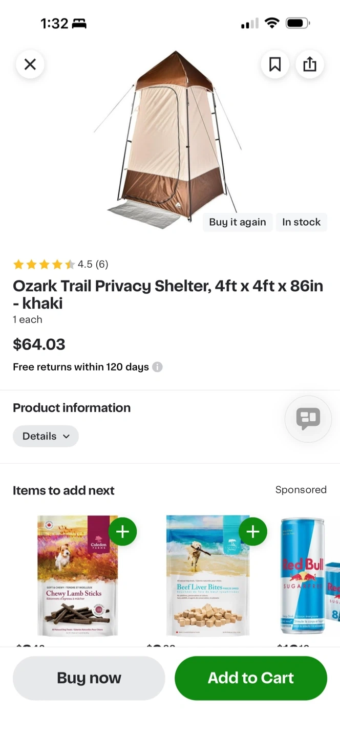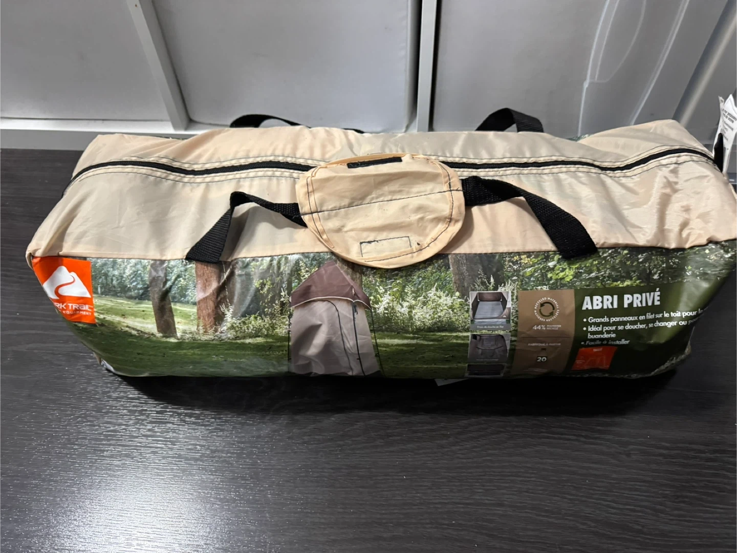 Ozark Trail Privacy Shelter, great for camping or outdoor activities. Dimensions are 4ft x 4ft x 86in. Comes in khaki color. Originally bought for $64.03