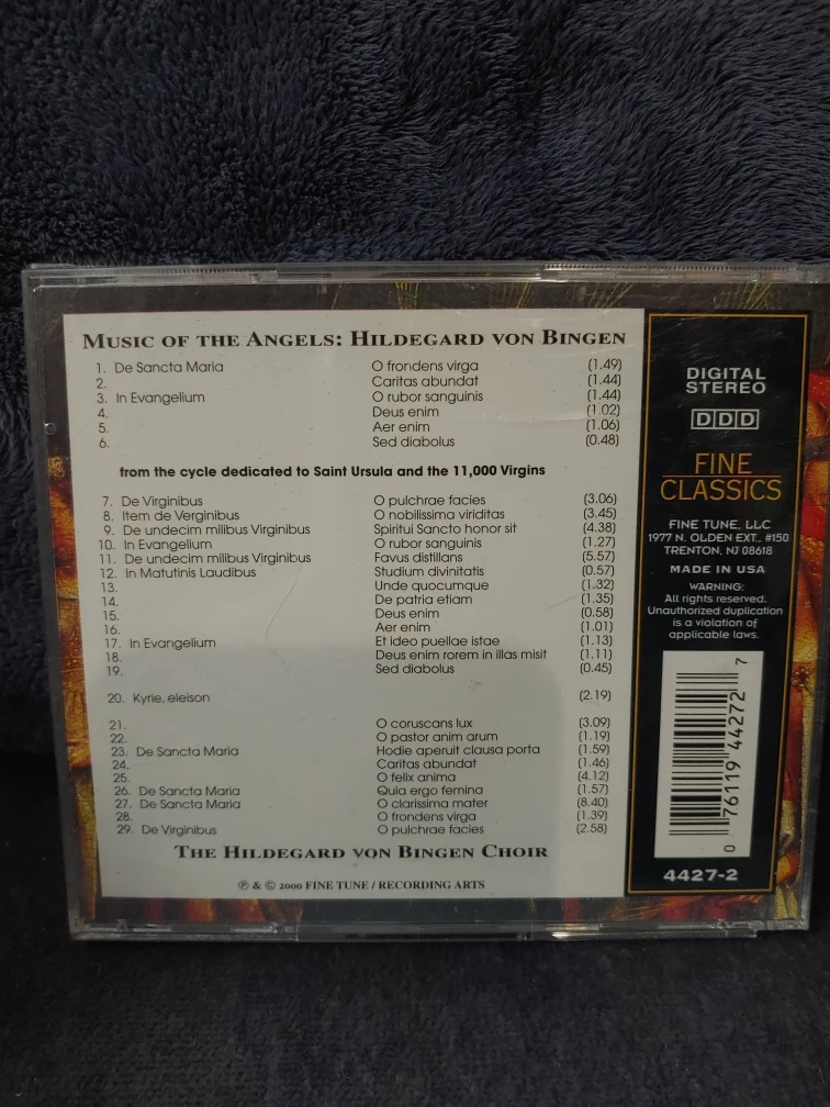 Selling a CD titled "Music of the Angels: Hildegard Von Bingen". It's a fine classics digital stereo CD from The Hildegard Von Bingen Choir collection. Case needs replacing