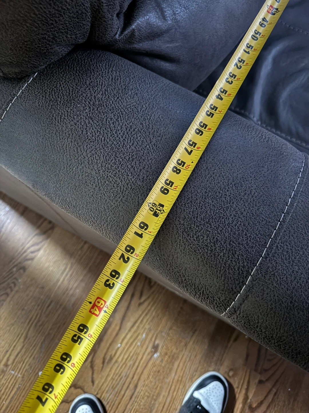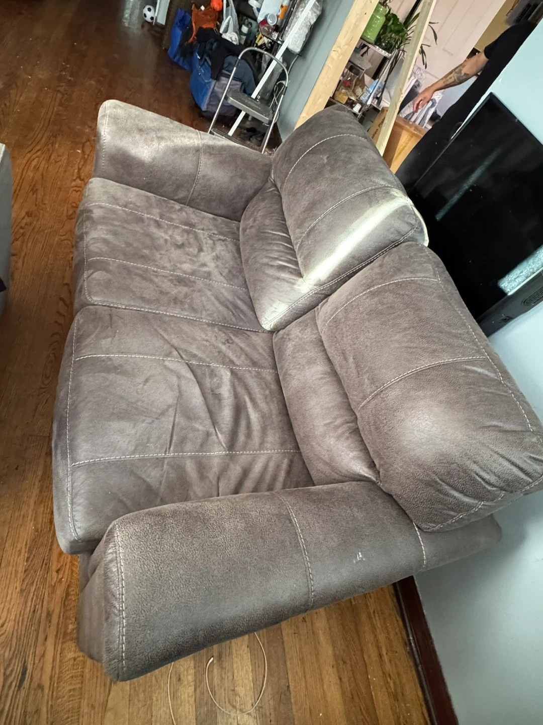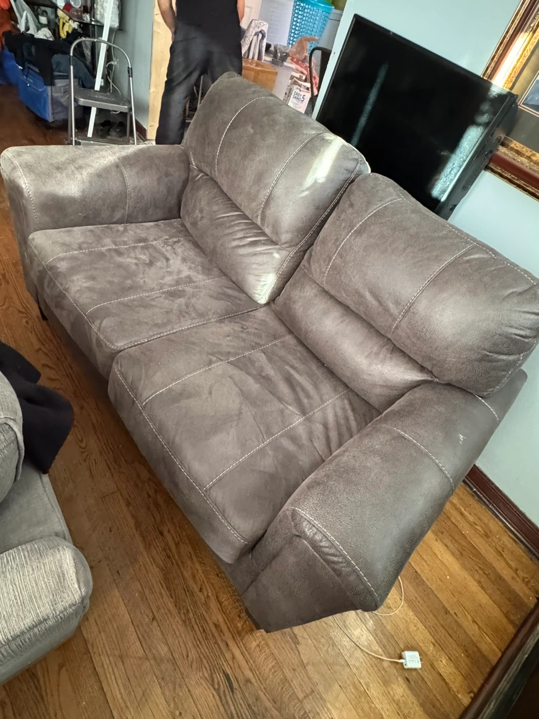 Selling a comfy loveseat sofa in a neutral gray color. It's about 66 inches wide, perfect for a smaller space or apartment. It's in good condition and ready for a new home!