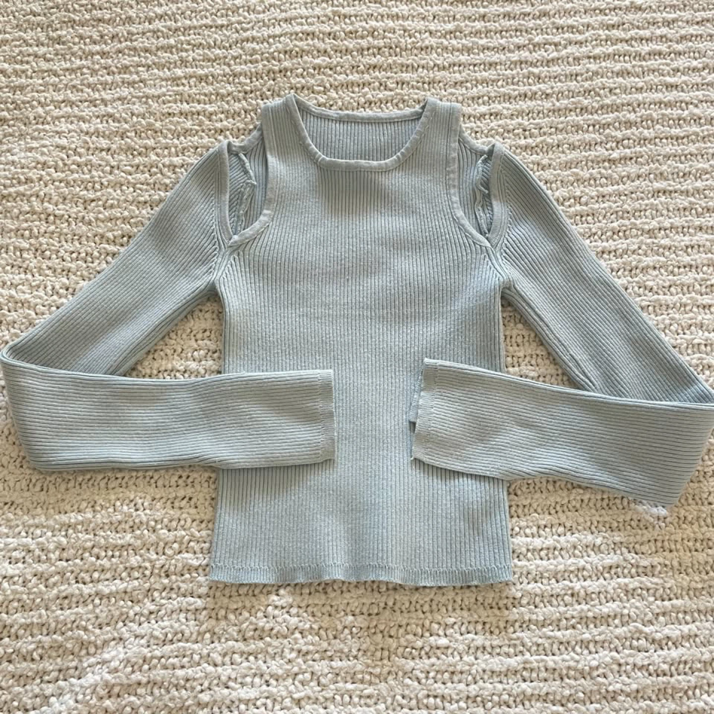 COMMSENE Light Blue Cut Out Shoulder Long Sleeve Top S