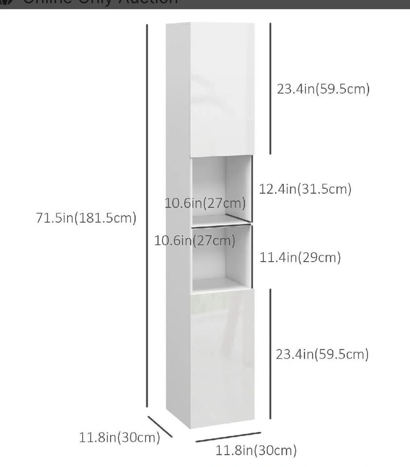 Maximize your space with this sleek, high-gloss cabinet. Designed for bathrooms, laundry rooms, or tight corners, it offers both open and enclosed storage in a compact footprint.