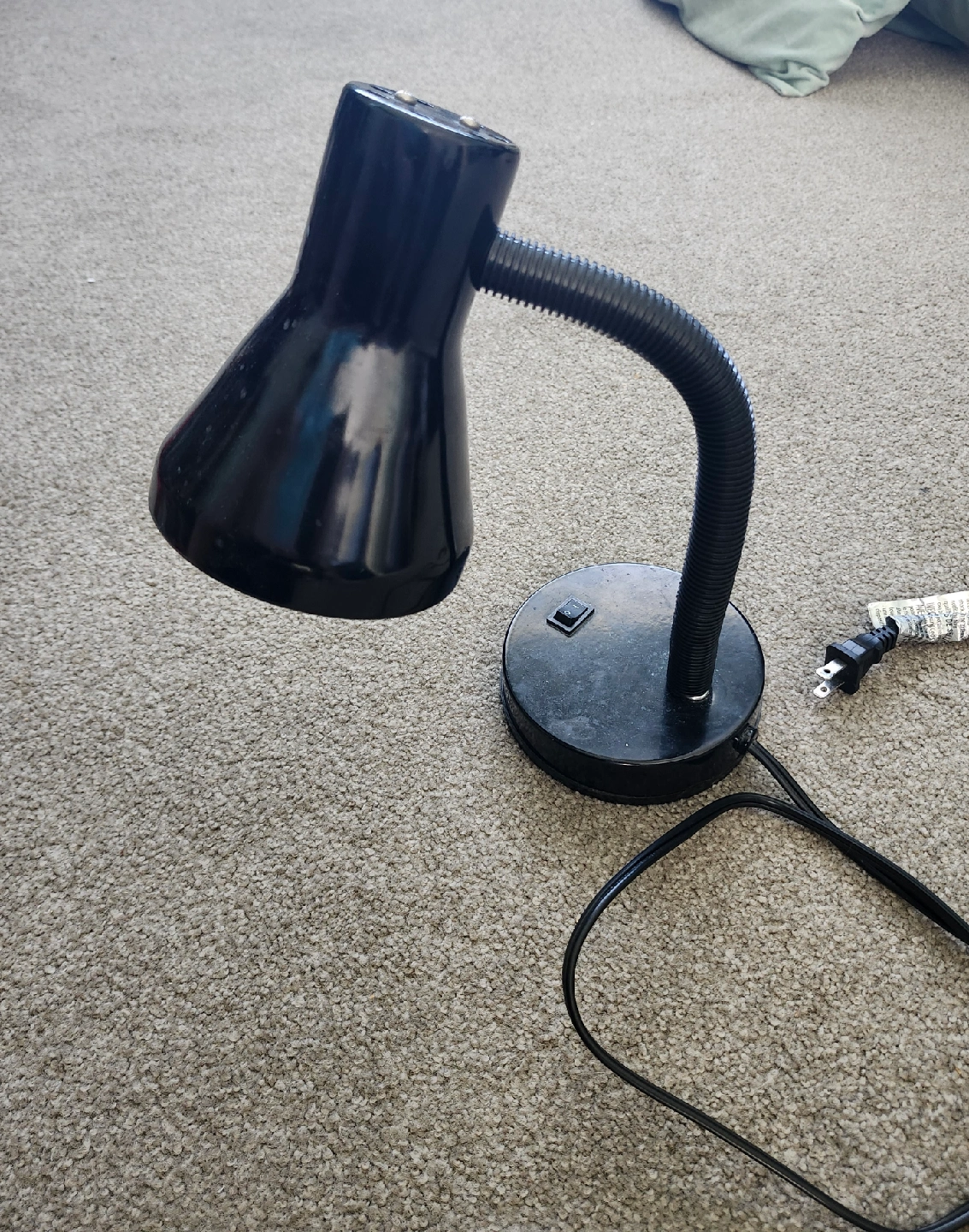 Selling a black desk lamp in used condition. It features a flexible gooseneck design, allowing you to adjust the light direction easily. Perfect for a desk or bedside table