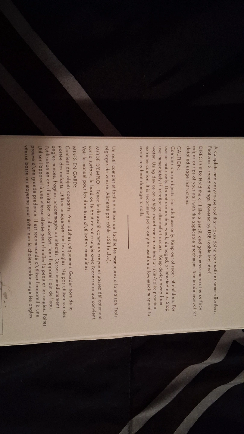 Selling an electric nail system that includes 5 attachments. It's a complete and easy-to-use tool for effortless nail care at home. The system is powered by USB (cable included). It features 5 speed settings, so you can adjust it to your needs. Get clean edges, perfect shapes, buff and smooth nails, and add shine with this system