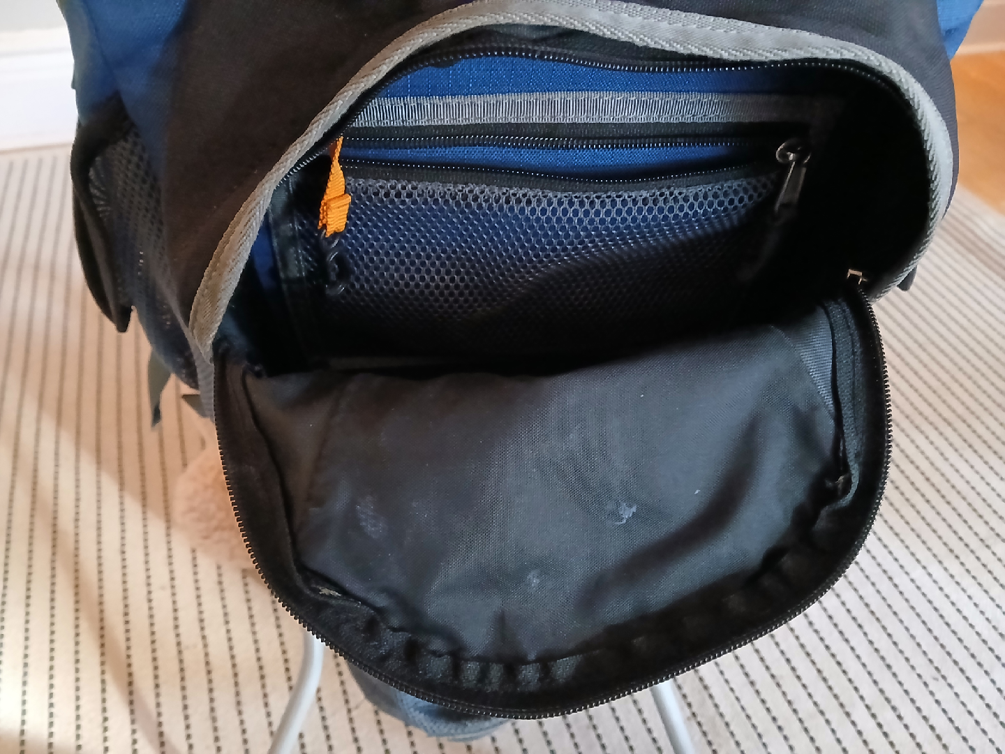 Minor hole in 1 side pouch, all other spaces and storage really useful and in great condition. Comes with a small rain cover & pouch on the crazy adventures!