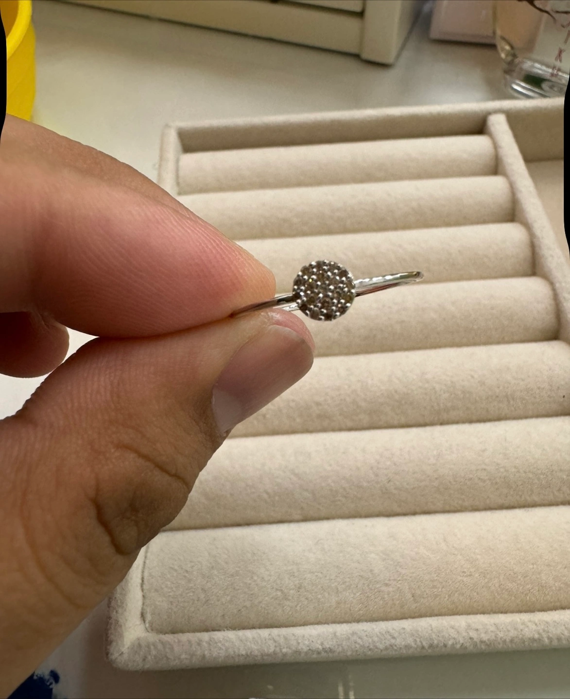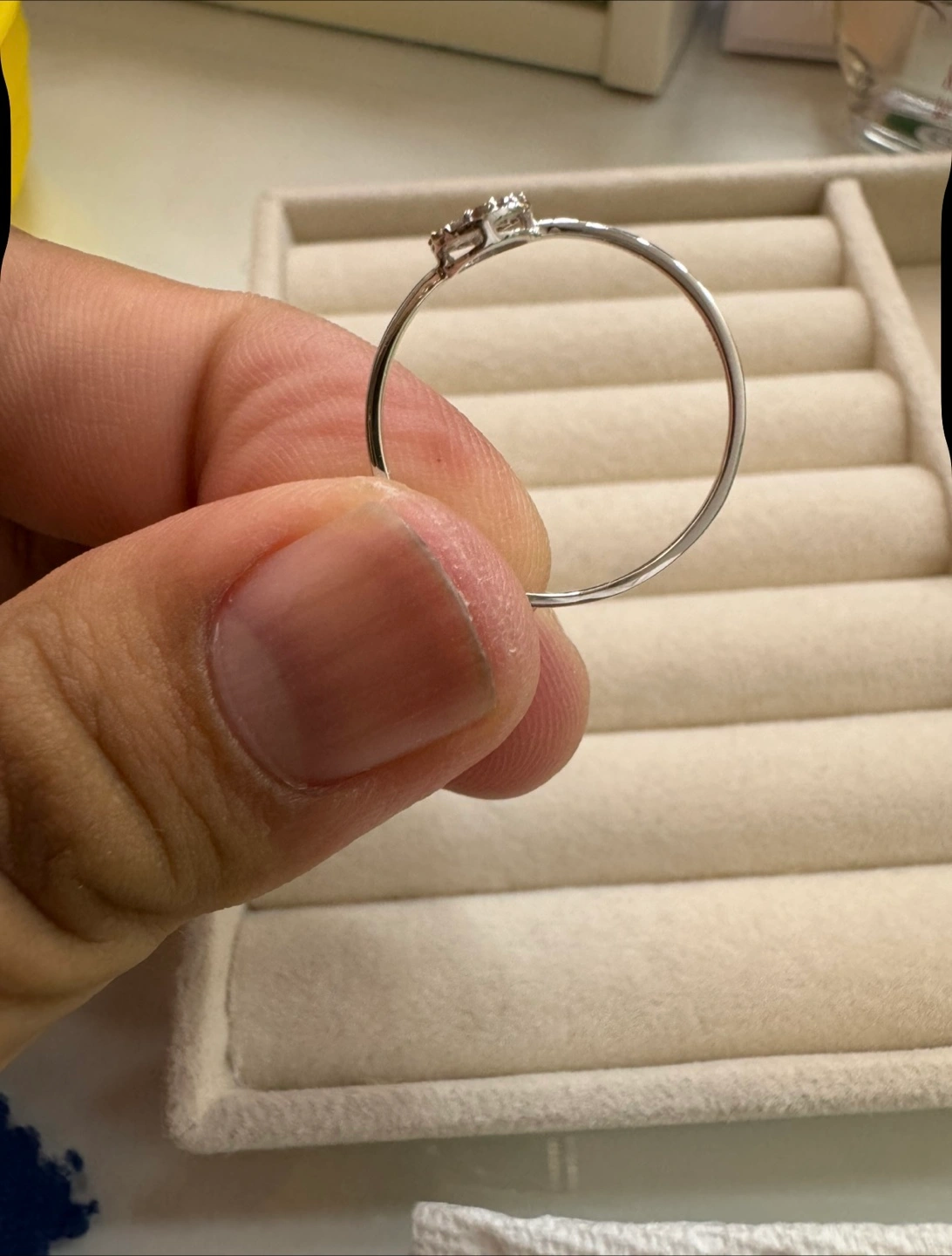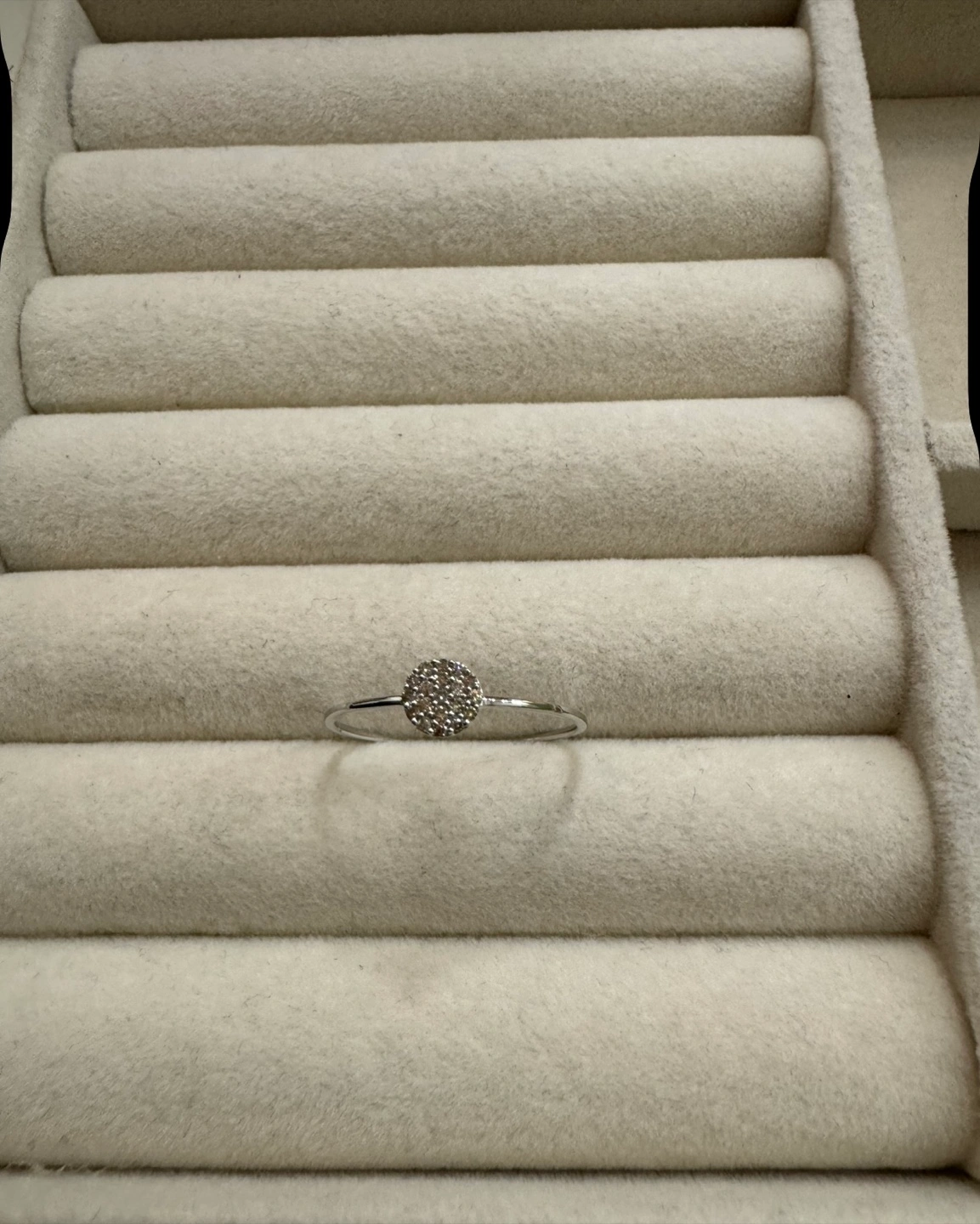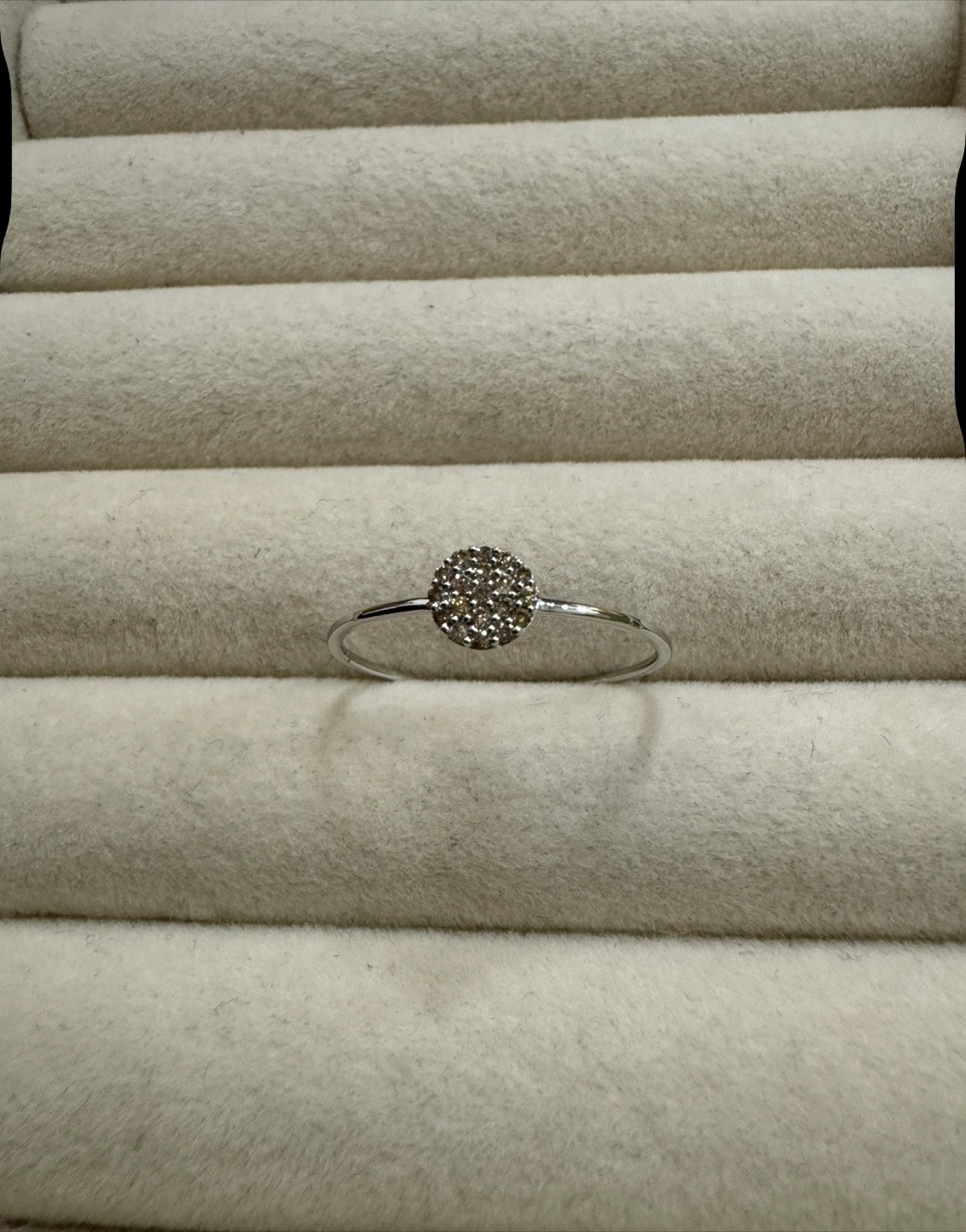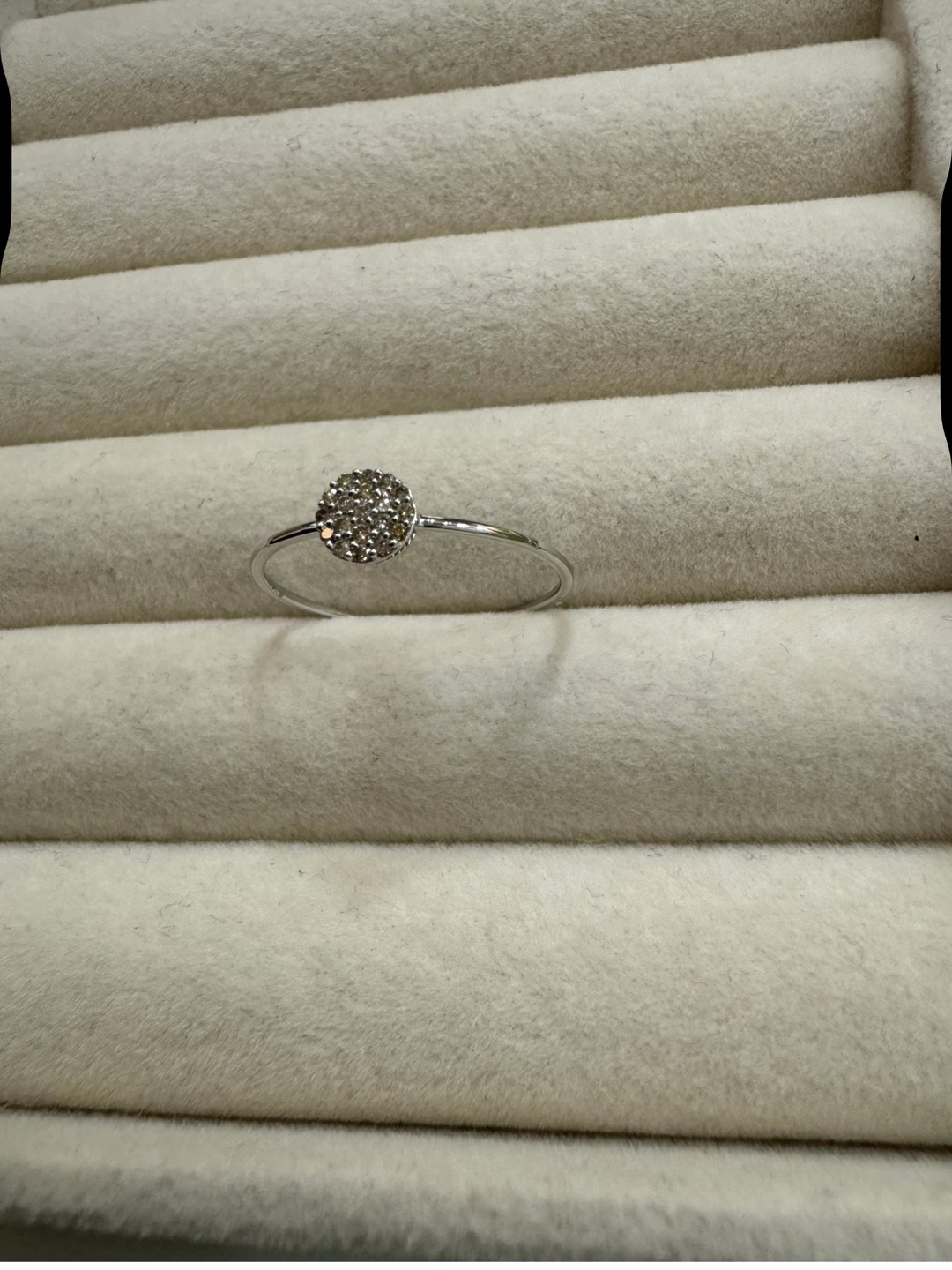 Its pure 18k white gold. Japan gold. 0.10 carats of natural diamond. Round brilliant cut. Size 9. Brand new. Comes with box