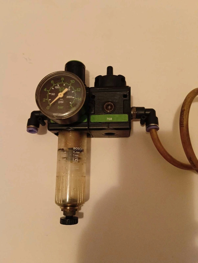 I'm selling a used Bosch air filter regulator, designed to maintain consistent air pressure in your pneumatic systems. This unit filters out contaminants and regulates air flow, optimizing the performance and lifespan of your tools and equipment. I've been using this in my garage for a while and it works great, I'm just upgrading my system. Here are some details: * Brand: Bosch * Type: Air Filter Regulator * Condition: Used I've priced this fairly. If the ad is still up, then yes, it's still available!