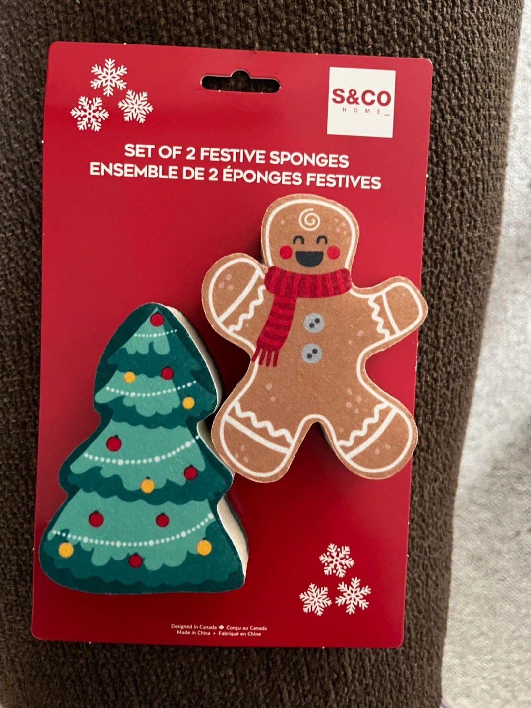 Selling a new set of 2 festive sponges from S&Co Home! These cute sponges are shaped like a gingerbread man and a Christmas tree. Perfect for adding a touch of holiday cheer to your kitchen or bathroom
