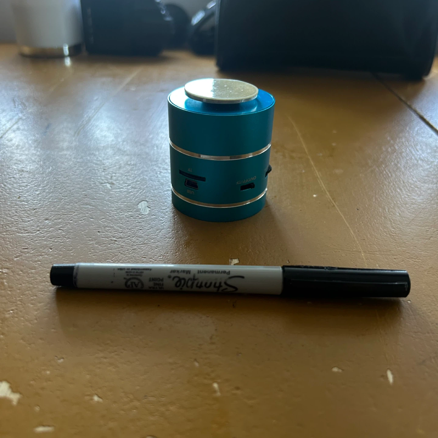 Free cute mini Bluetooth speaker! It's a vibrant blue colour and super portable.