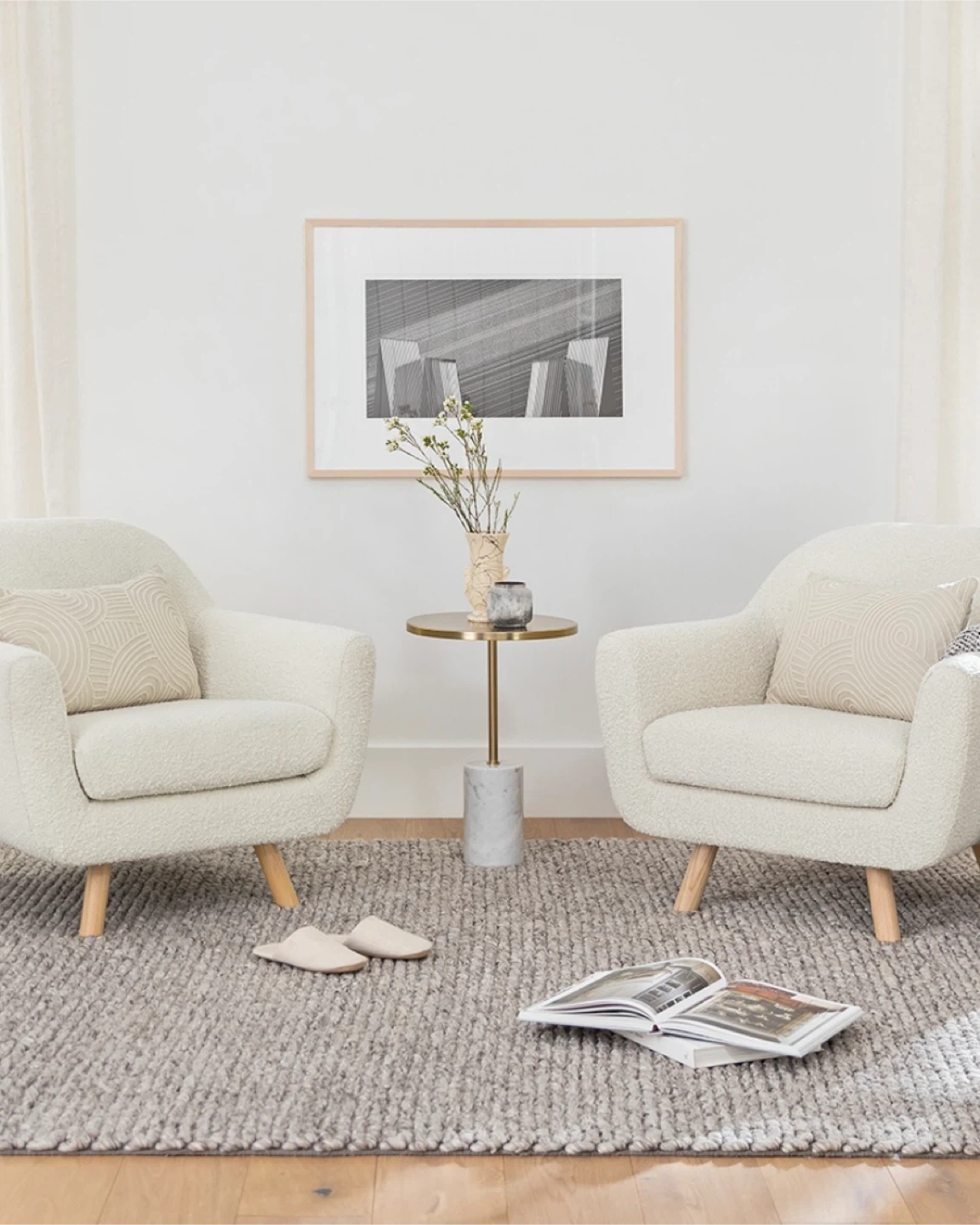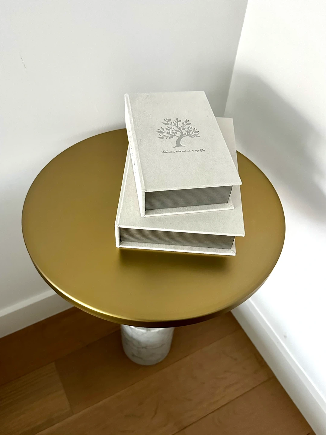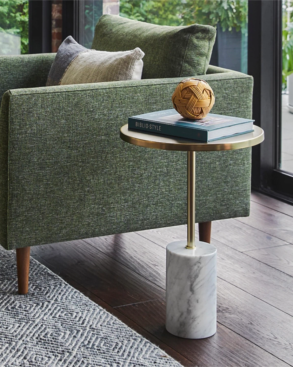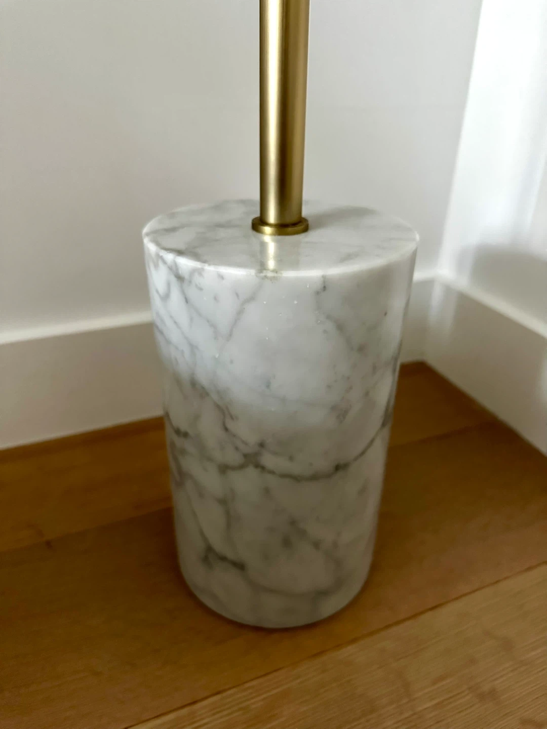 Selling a stylish accent table from Article! It features a sleek brass top and a sturdy marble base. Perfect for adding a touch of elegance to any room. Excellent condition