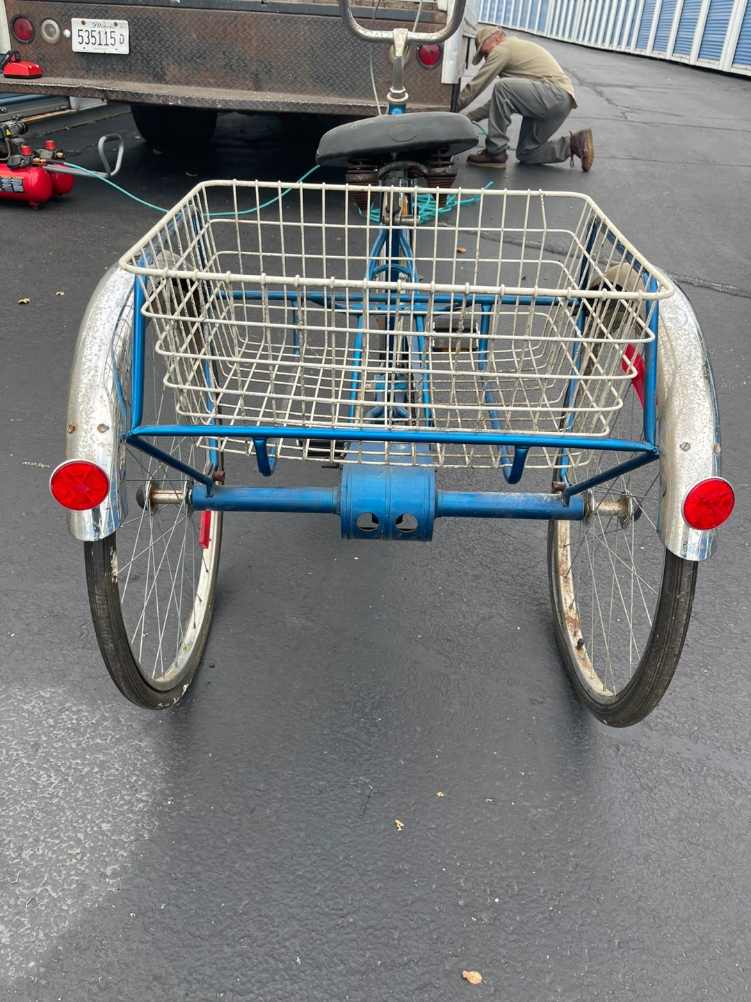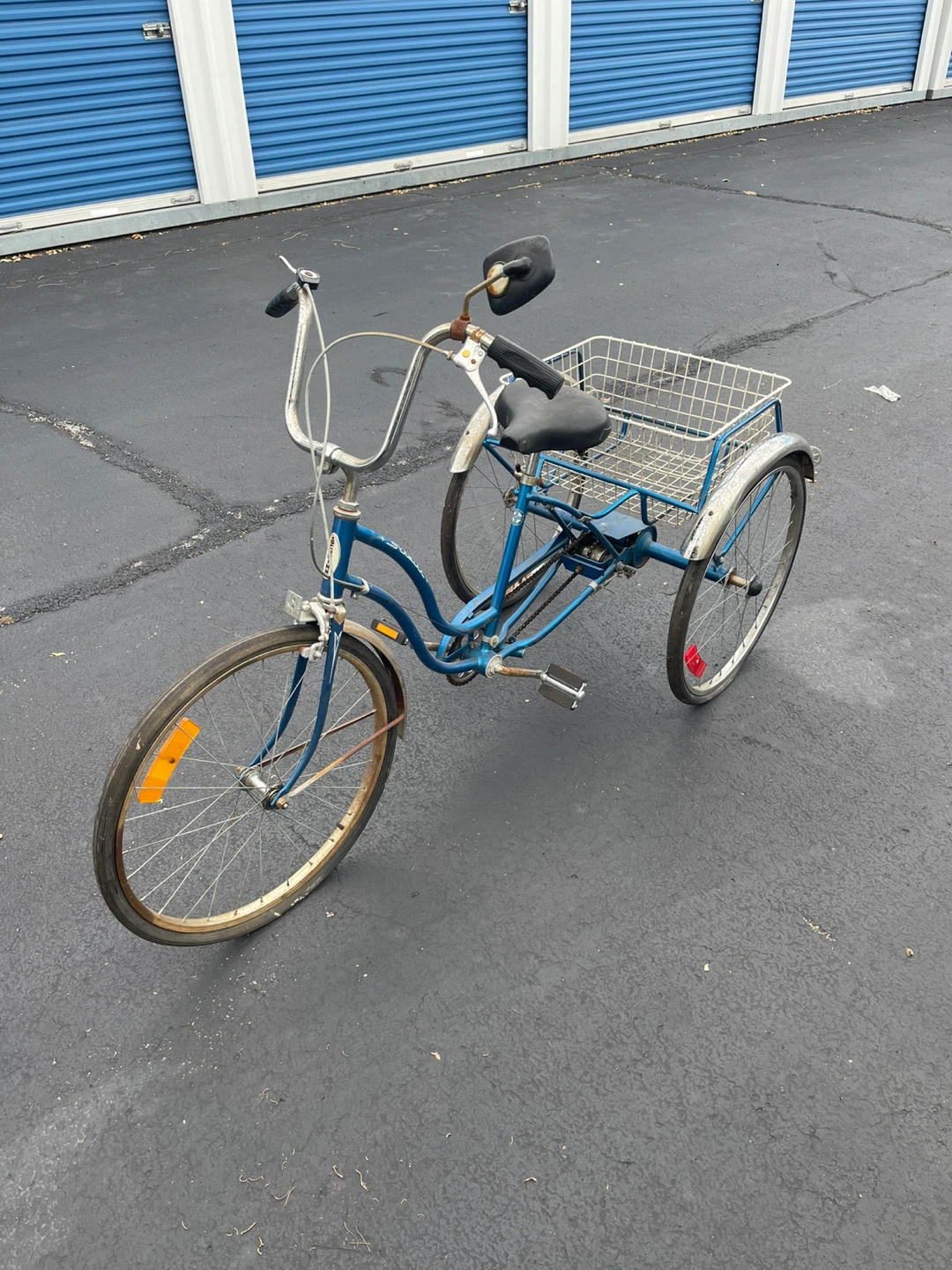 Selling a Schwinn Town & Country adult tricycle. It's a great way to get around town or just enjoy a leisurely ride. It has a basket in the back for carrying groceries or other items. There are some signs of wear, but it's still in good working condition