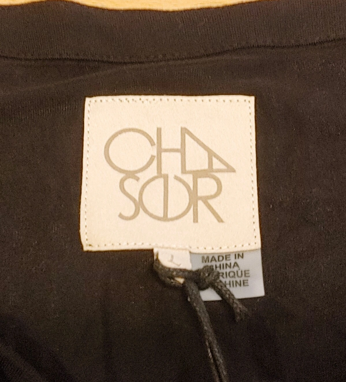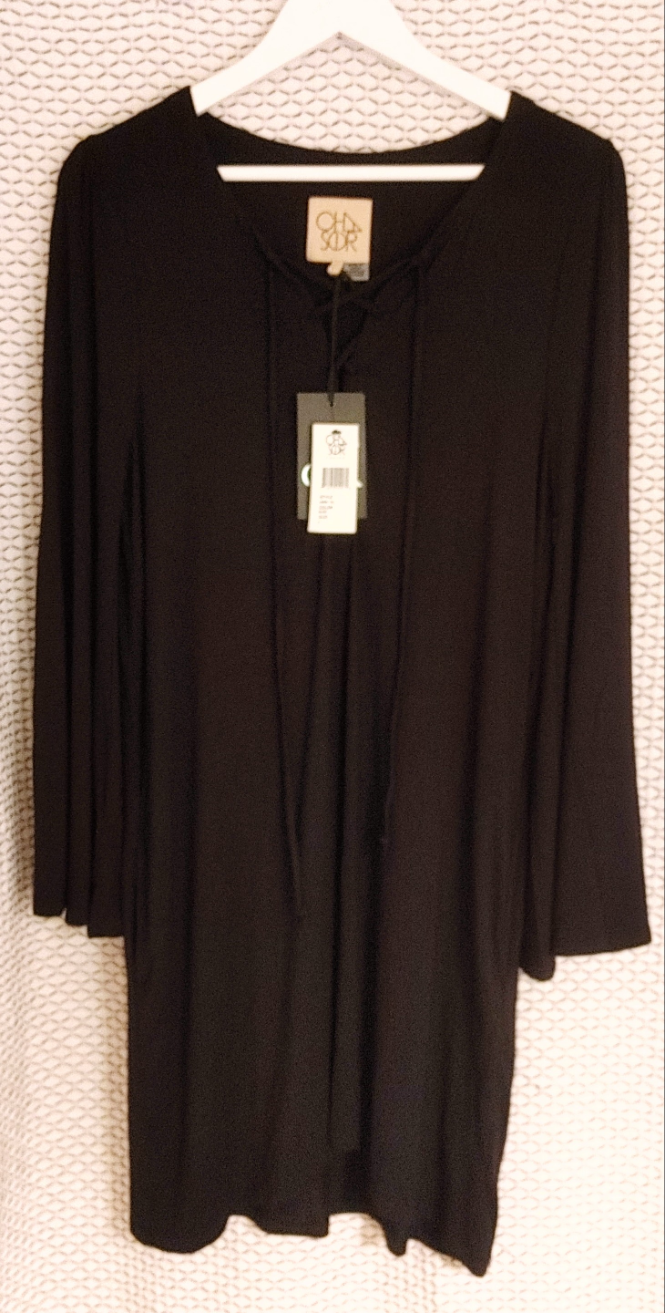 Womens brand new size large Chaser black long sleeve dress with tags still attached. Has front drawstring and flared sleeves. Never worn. No rips or stains. Smoke free home pick up Mt.Brydges cash only.