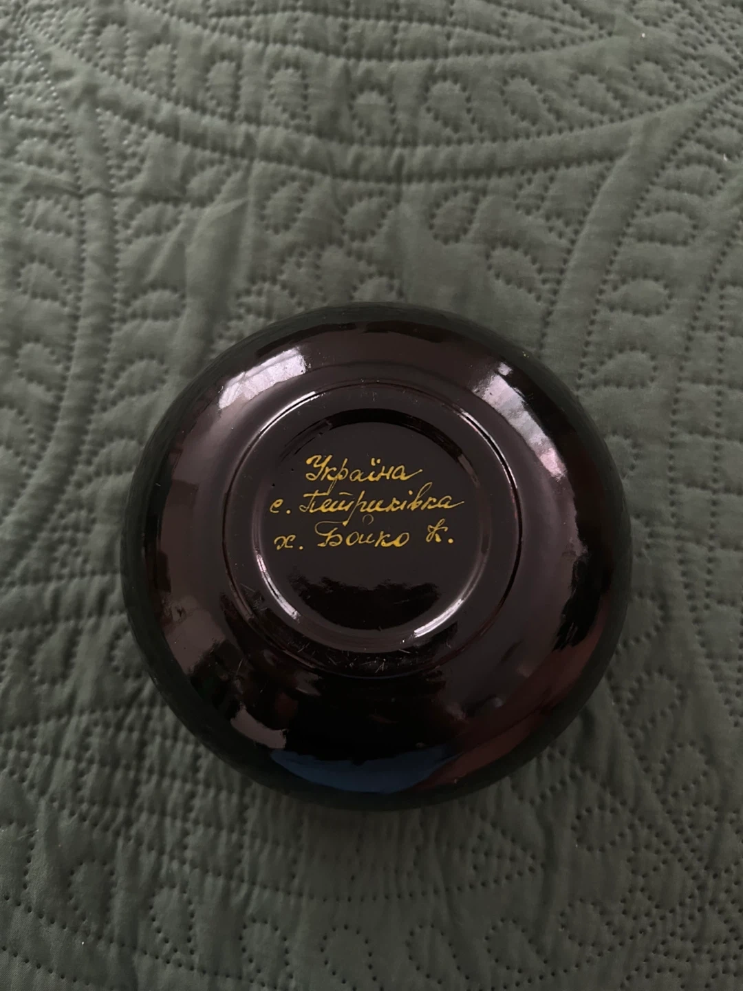 Selling a lovely jewelry box with a traditional Ukrainian floral design. It's perfect for storing small jewelry or keepsakes. The inside is lined with a soft red velvet material. The bottom has some handwritten text in Ukrainian.