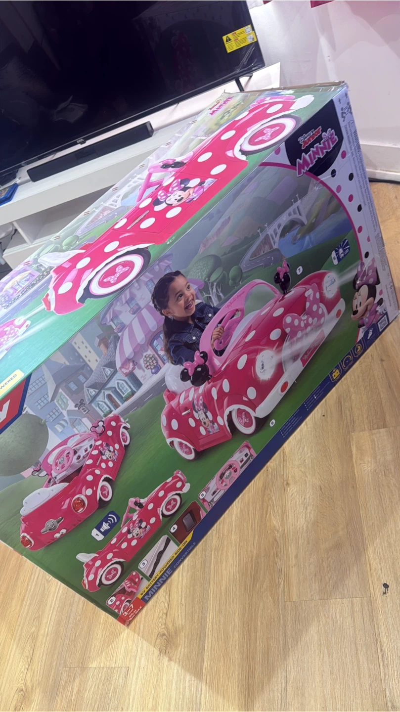Selling a super cute Disney Minnie Mouse ride-on car! It's pink with white polka dots and features Minnie Mouse on the side. Perfect for little ones who love Minnie! The car is in good condition and ready for a new home. I don’t have it in the box