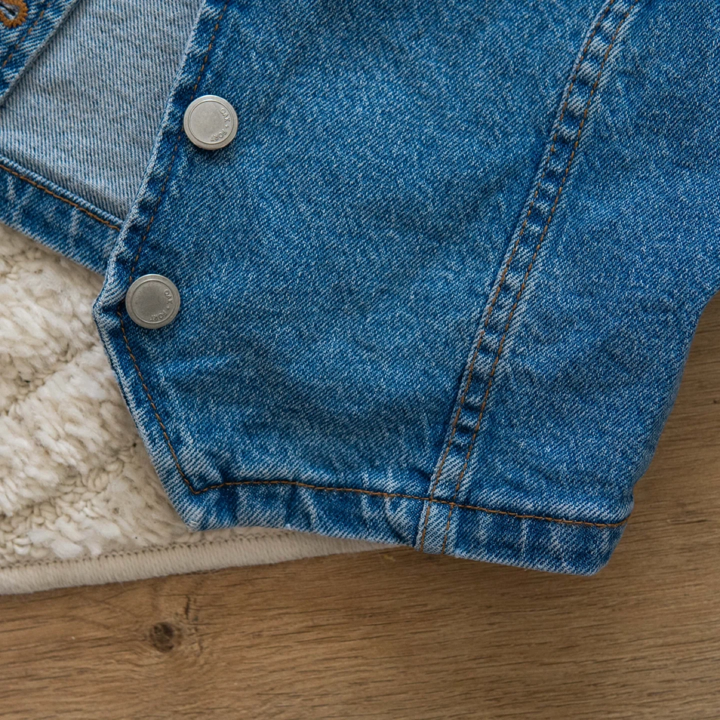 Here's a cute denim vest from Oak + Fort! It's a size small and in great condition. Perfect for layering or adding a bit of edge to your outfit. The denim is a classic blue wash, and it features button closures.