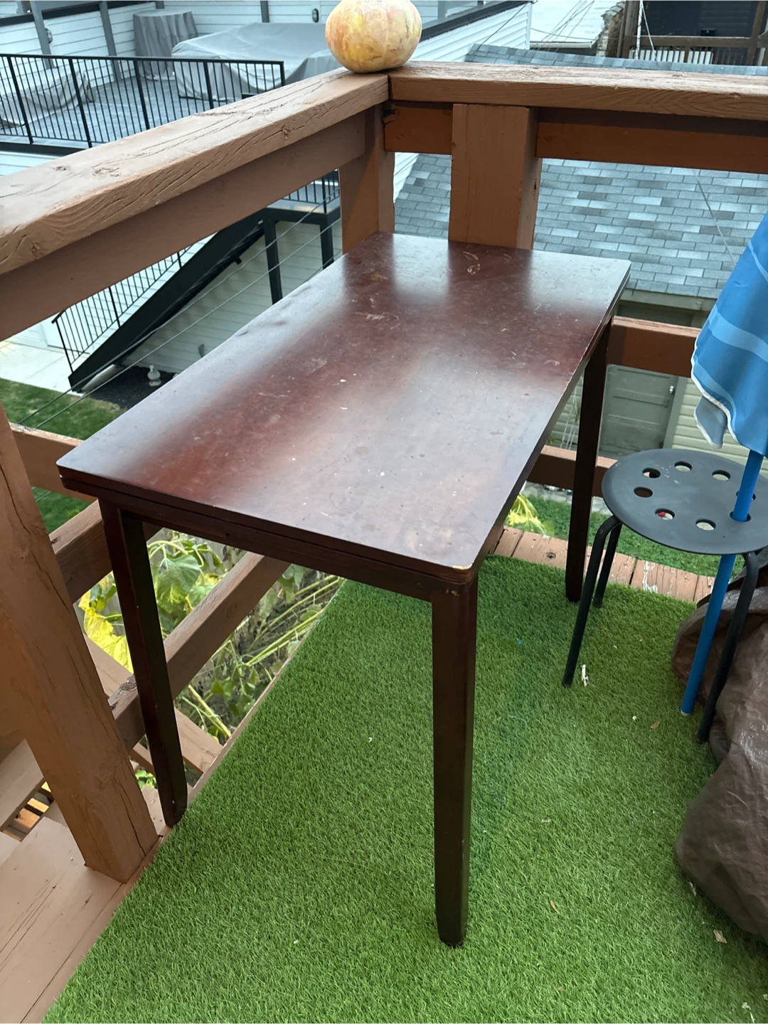 Selling an expandable brown table, perfect for a small space! It's in good condition and ready for a new home