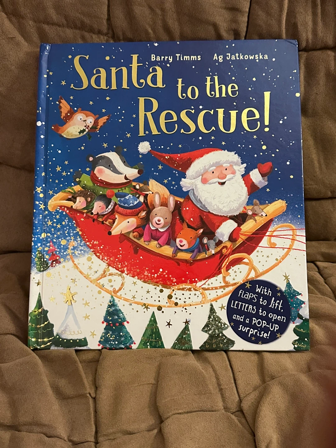 Selling a copy of "Santa to the Rescue!" written by Barry Timms and Ag Jatkowska. It's a delightful Christmas story about the animals of Holly Tree Forest helping Santa and his friends. It’s also hard cover.