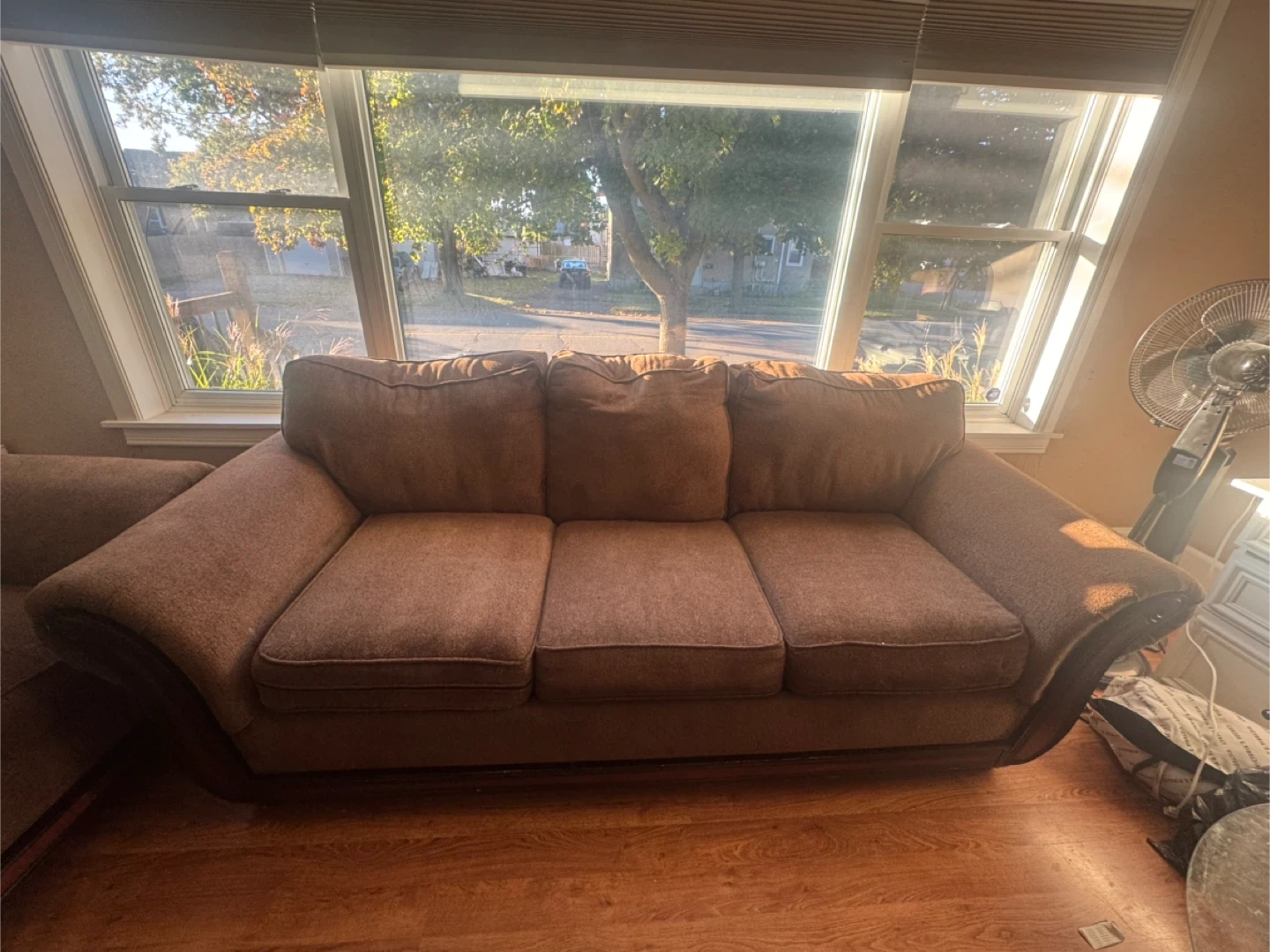 Selling a comfy brown sofa set! It's perfect for a living room or family room. The set includes a sofa and a loveseat, both in good condition. The cushions are soft and supportive, making it a great place to relax after a long day