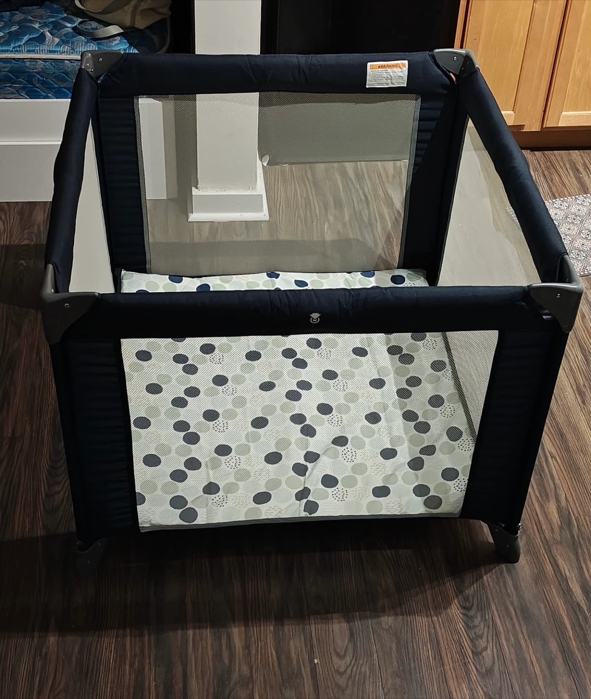 Selling a Chicco playard in excellent condition! It's a spacious and sturdy playard, perfect for babies and toddlers. The playard features a soft mattress. It's easy to set up and take down, making it great for travel or home use. It's been well-maintained and is ready for a new home