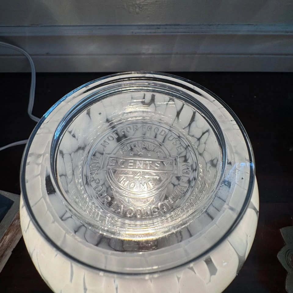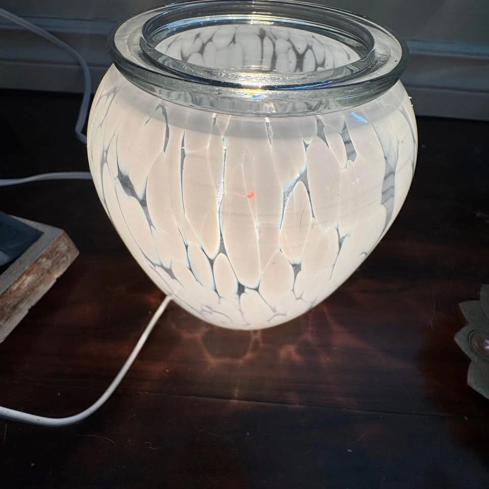 Scentsy's In The Clouds Candle Warmer features melted white glass beads that creates a dreamy, amazing cloud like pattern. This is one beautiful warmer and will jazz up any space in your cozy home. 16 cm tall, 25W.