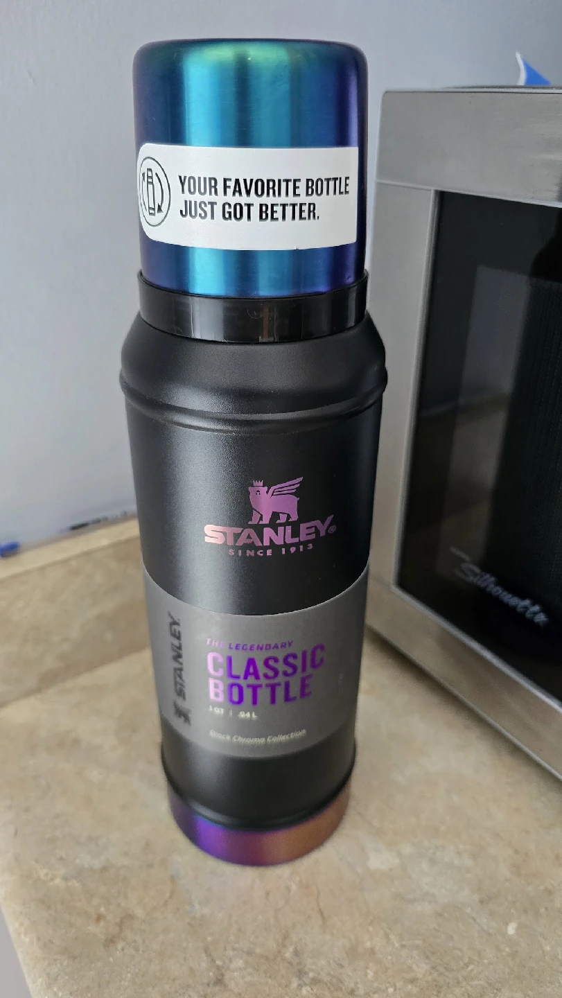 Selling a brand new Stanley Classic Bottle in Black Chrome, 1QT size! This legendary bottle is perfect for keeping your drinks hot or cold for hours. It's durable and stylish, ready for any adventure