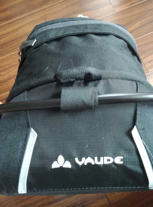 VAUDE Off Road Bag S saddle bag €95.00 Eco Finish Water and dirt repellent without the use of PFAS/PFCs. Equipment: .inner zip pocket .zip pocket in the lid .expansion bellows .luggage spider .removable shoulder strap .do not use with carbon seat posts .clamps for diameter 25-32 mm and 32-36 mm .volume extension .reflective elements