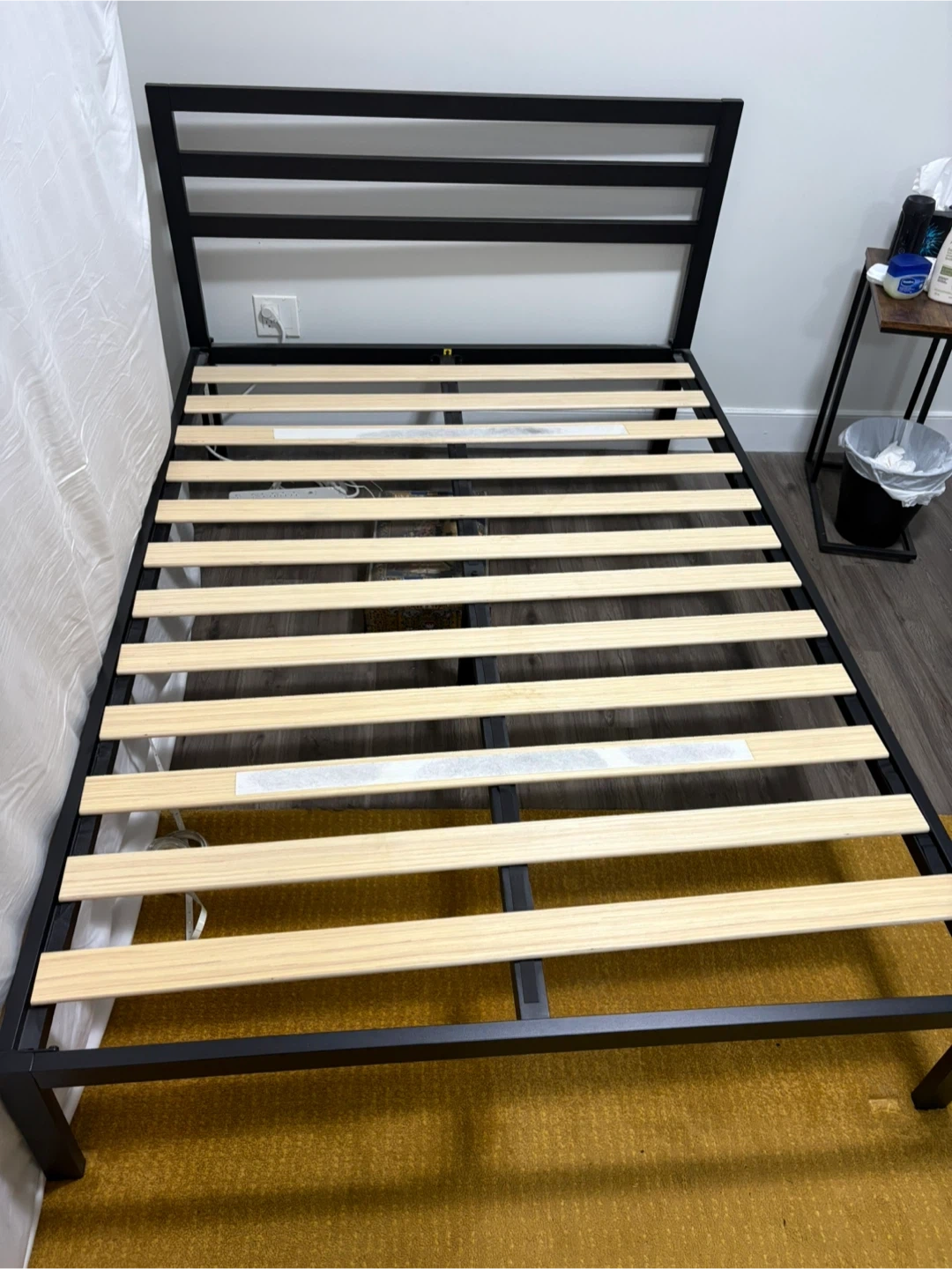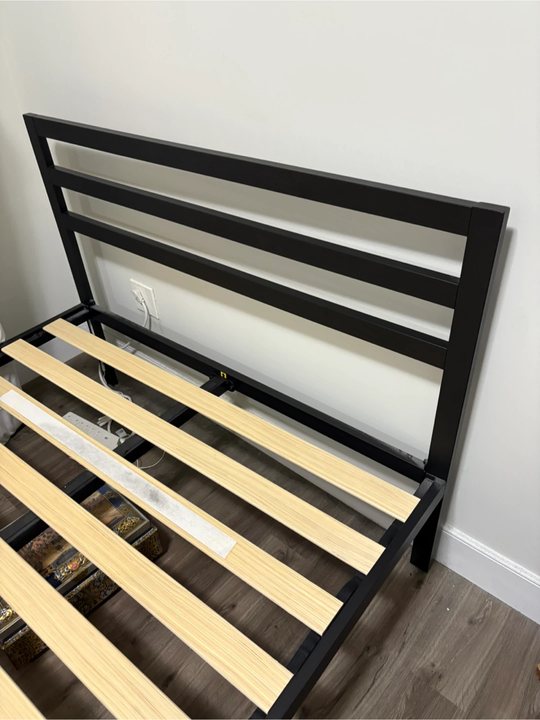 Selling a sturdy black metal bed frame. It's in great shape and ready to support your mattress!