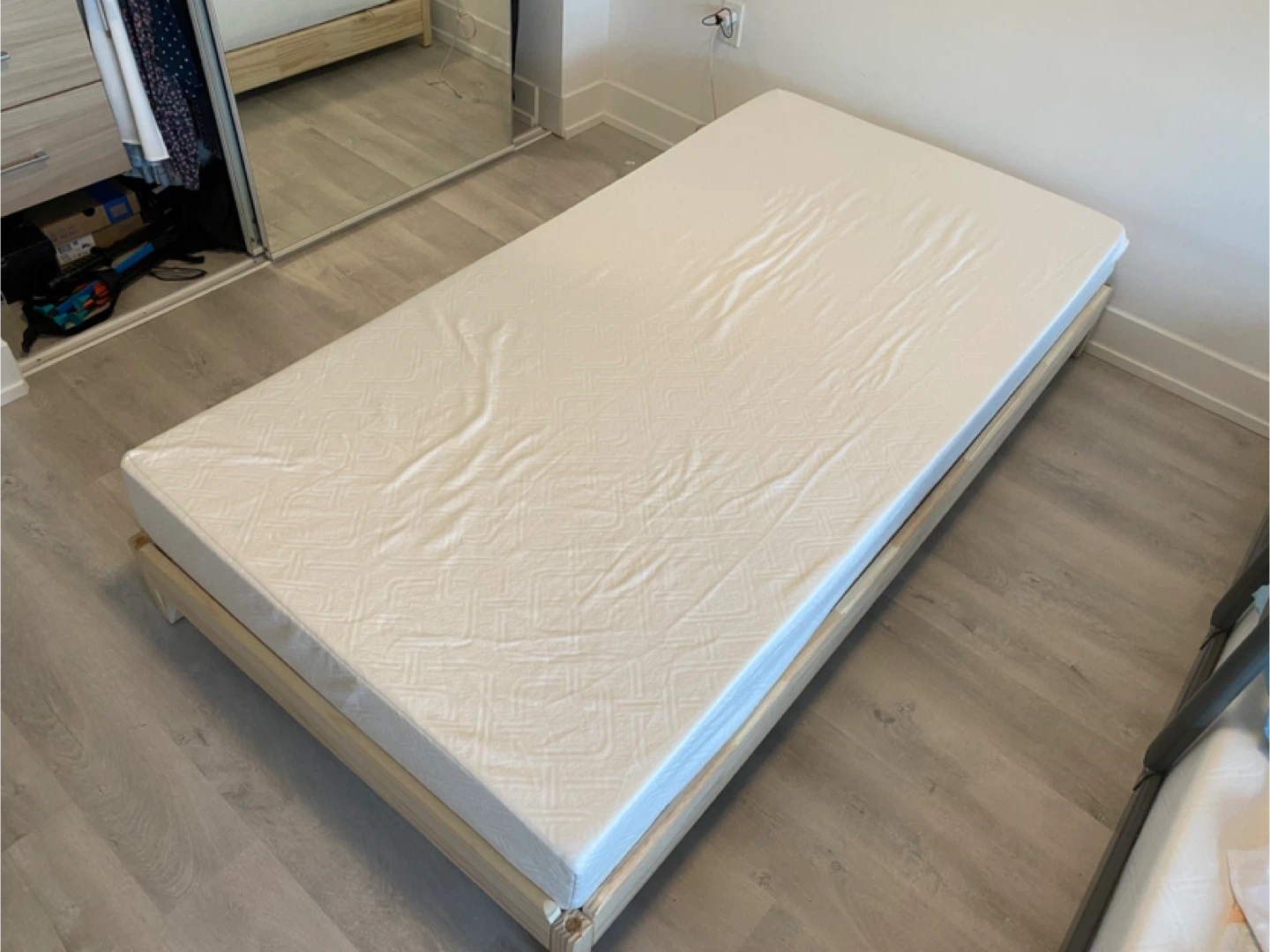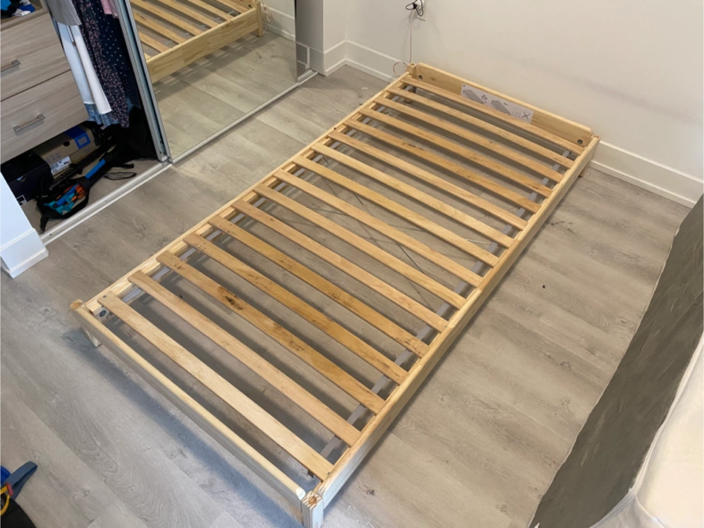 This bed frame is stackable, making it a great space-saving option! Originally bought for $279 as a 2-pack. You will be saving a lot because it's half price of original price.
