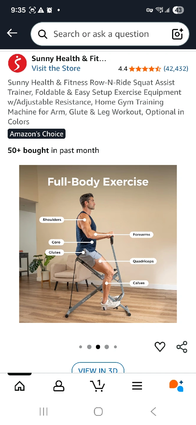 Get a full-body workout with the Sunny Health & Fitness Row-N-Ride Squat Assist Trainer! This foldable and easy-to-set-up exercise equipment is designed for arm, glute, and leg workouts. It features adjustable resistance and is optional in colours. It's a great way to get a home gym workout!
