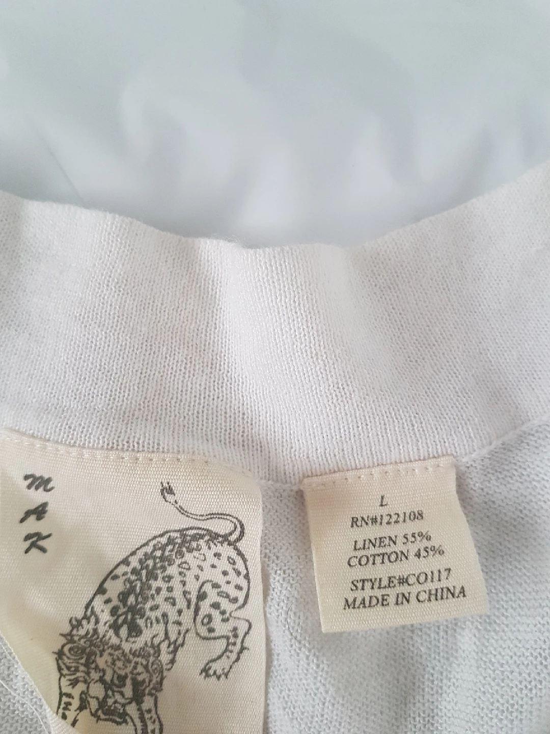 Here's a lovely MAK top in size L! It's made from a blend of 55% linen and 45% cotton, making it lightweight and breathable. The style number is CO117. Perfect for a casual day out!