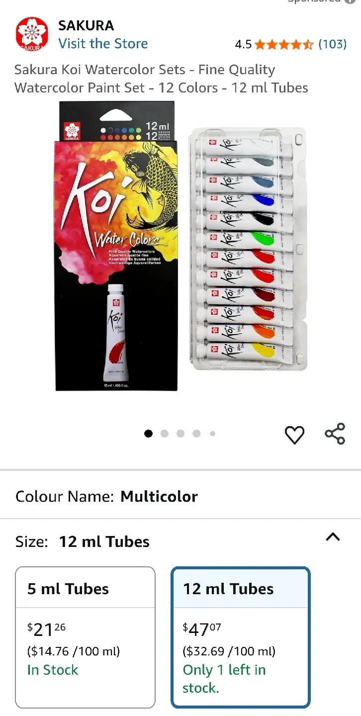 Dive into a world of vibrant colours with this Sakura Koi Watercolors set, featuring 12 tubes of highly pigmented paints perfect for blending and layering! This set is new and ready to bring your artistic visions to life.
