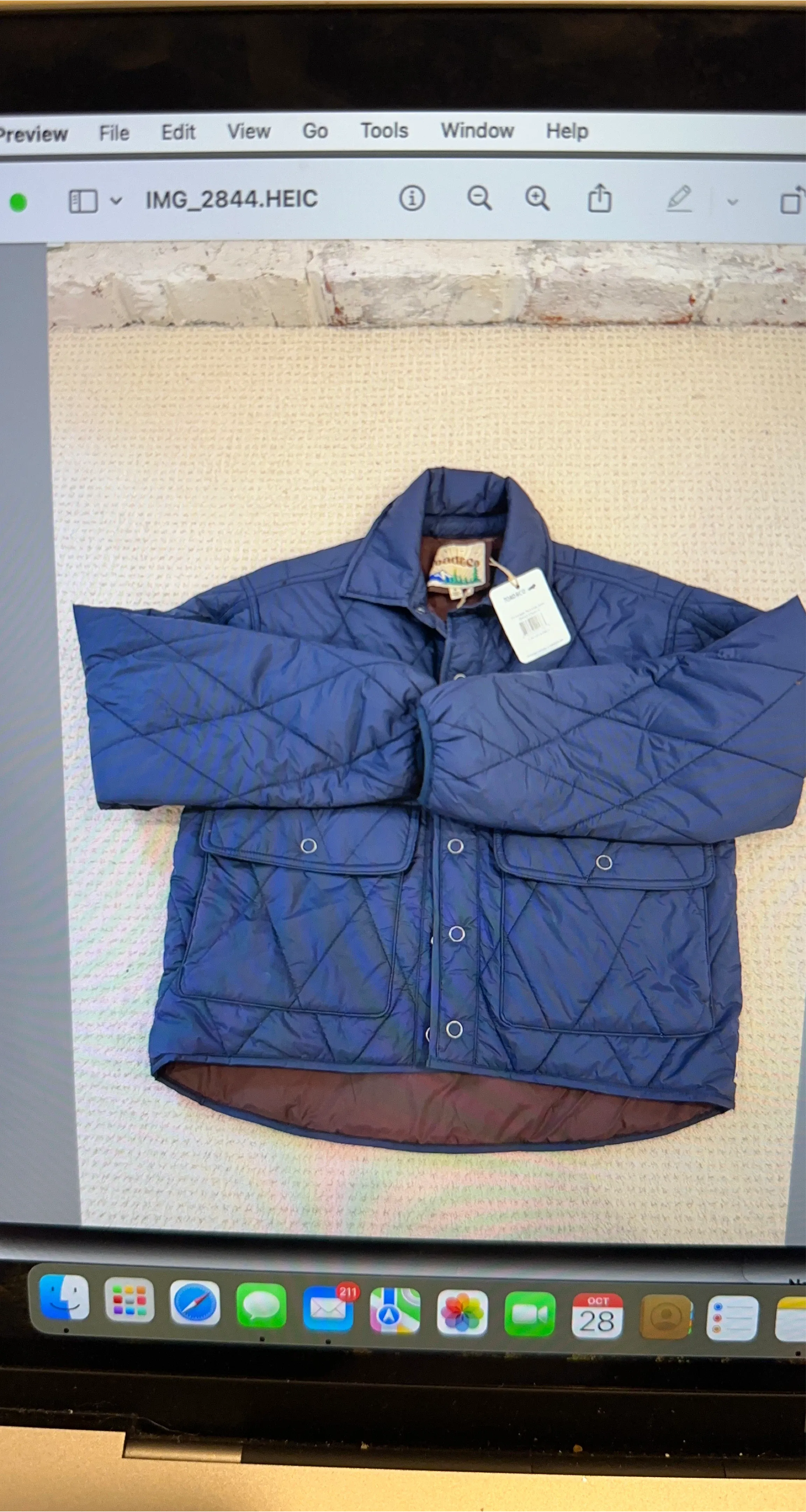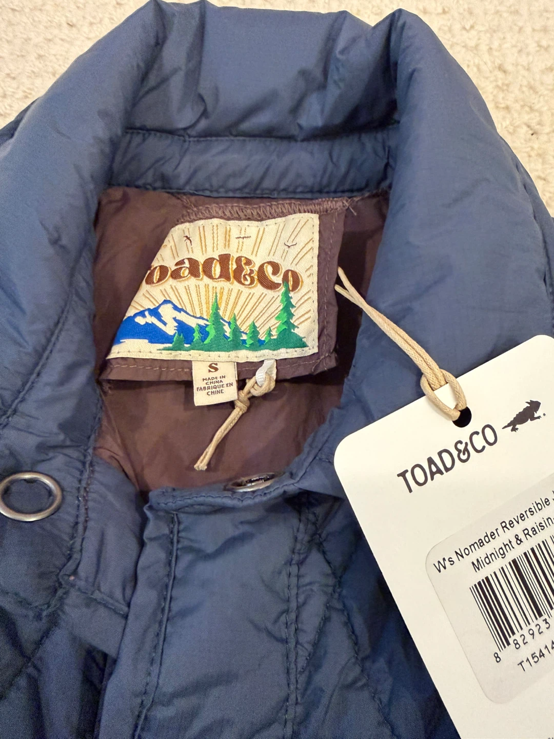 This is a Toad&Co Women’s Reversible Jacket in size small. The colours are Navy Blue and Raisin. It's in new condition with tags still attached!
