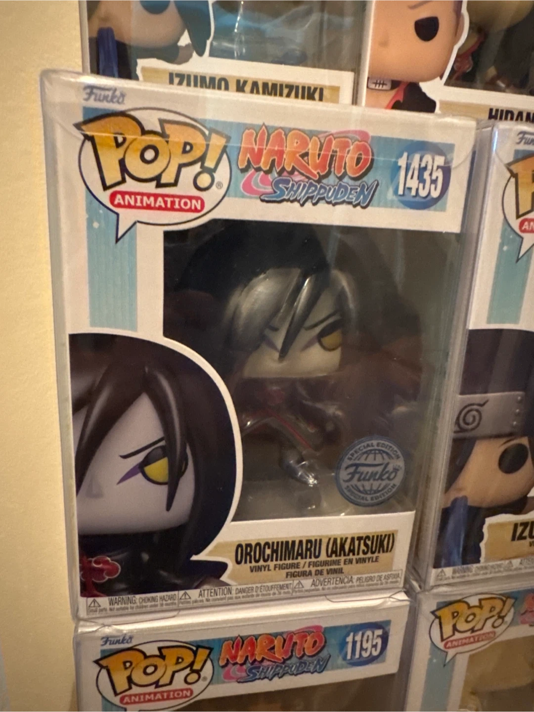 Selling a collection of Naruto Shippuden Funko Pop figures! Each figure is in its original box and in great condition. Available characters include Izumo Kamizuki, Hidan, Orochimaru (Akatsuki), Sasuke (Rinnegan), Might Guy, Tsunade, and Asuma