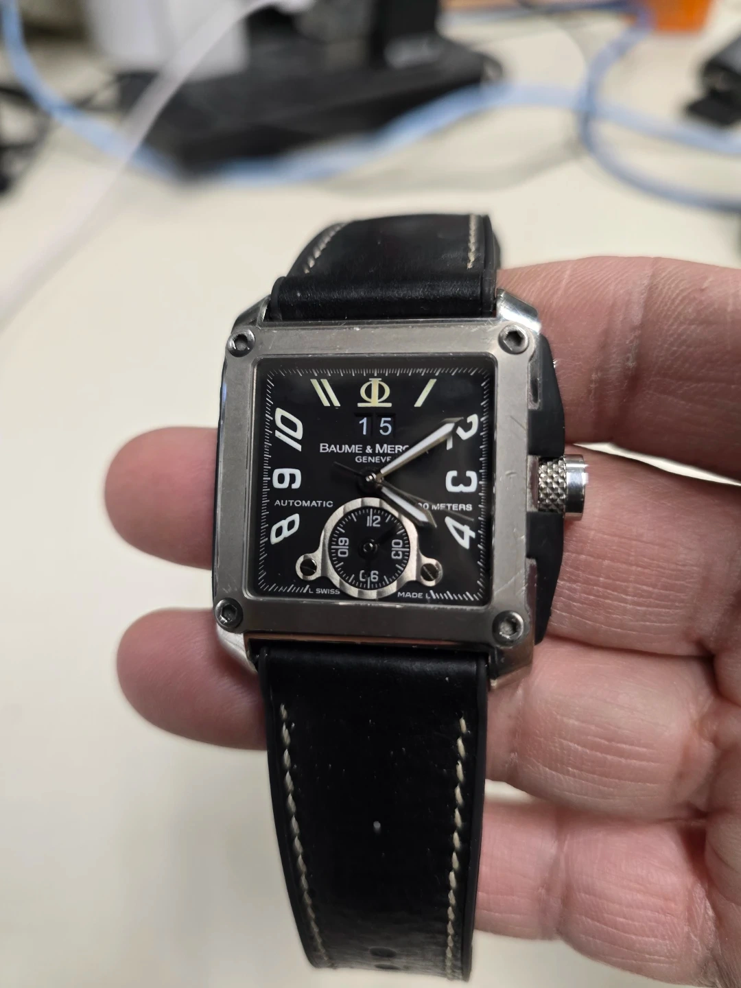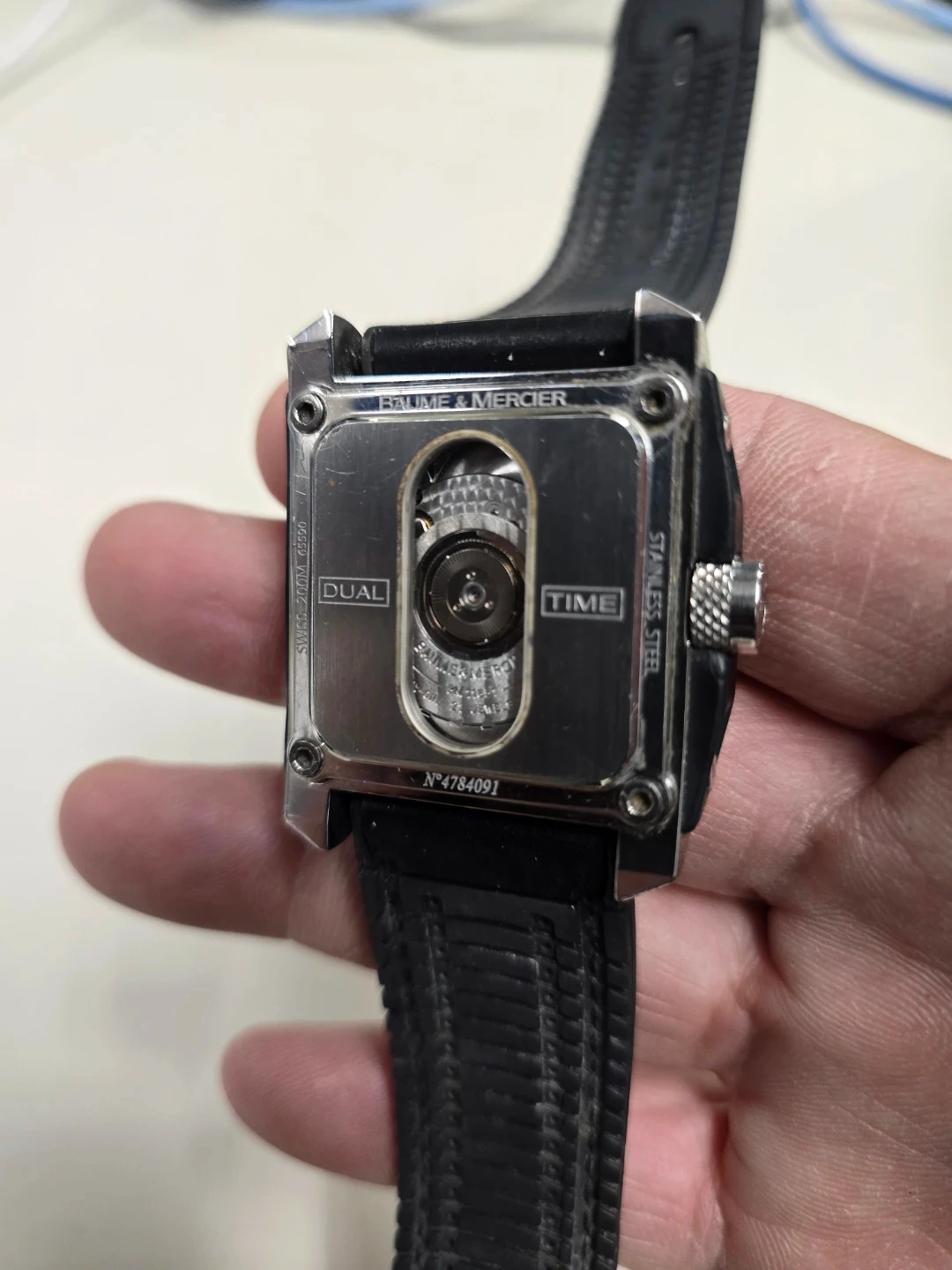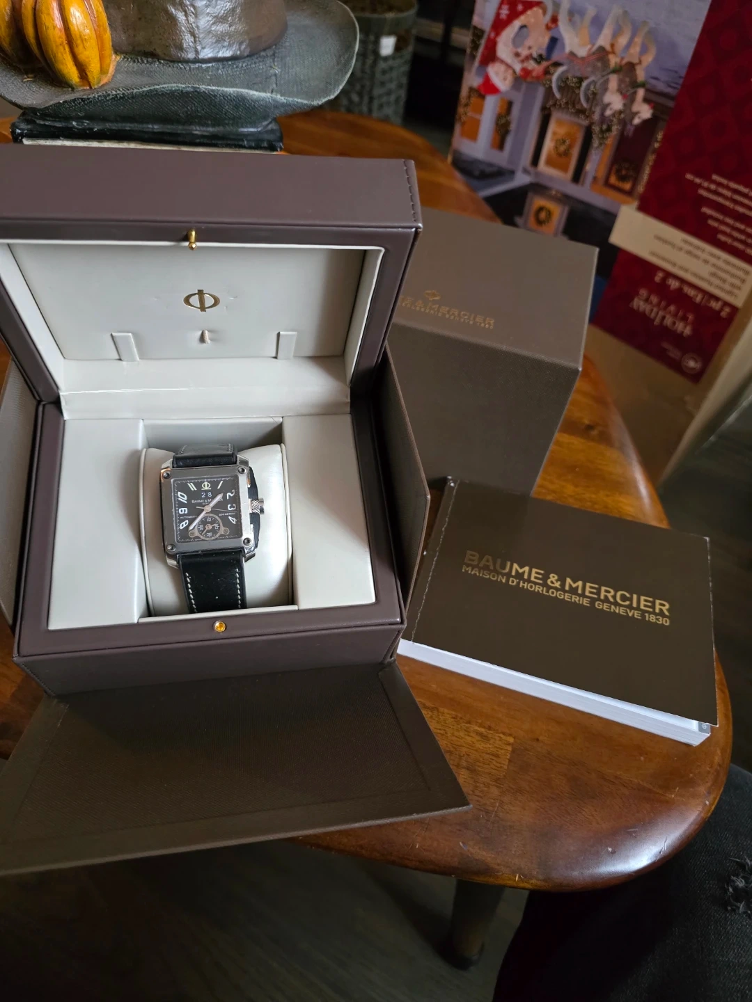 Selling a Baume & Mercier Hampton XL .Square Dual Time steel men's watch. It comes with the box and manual.