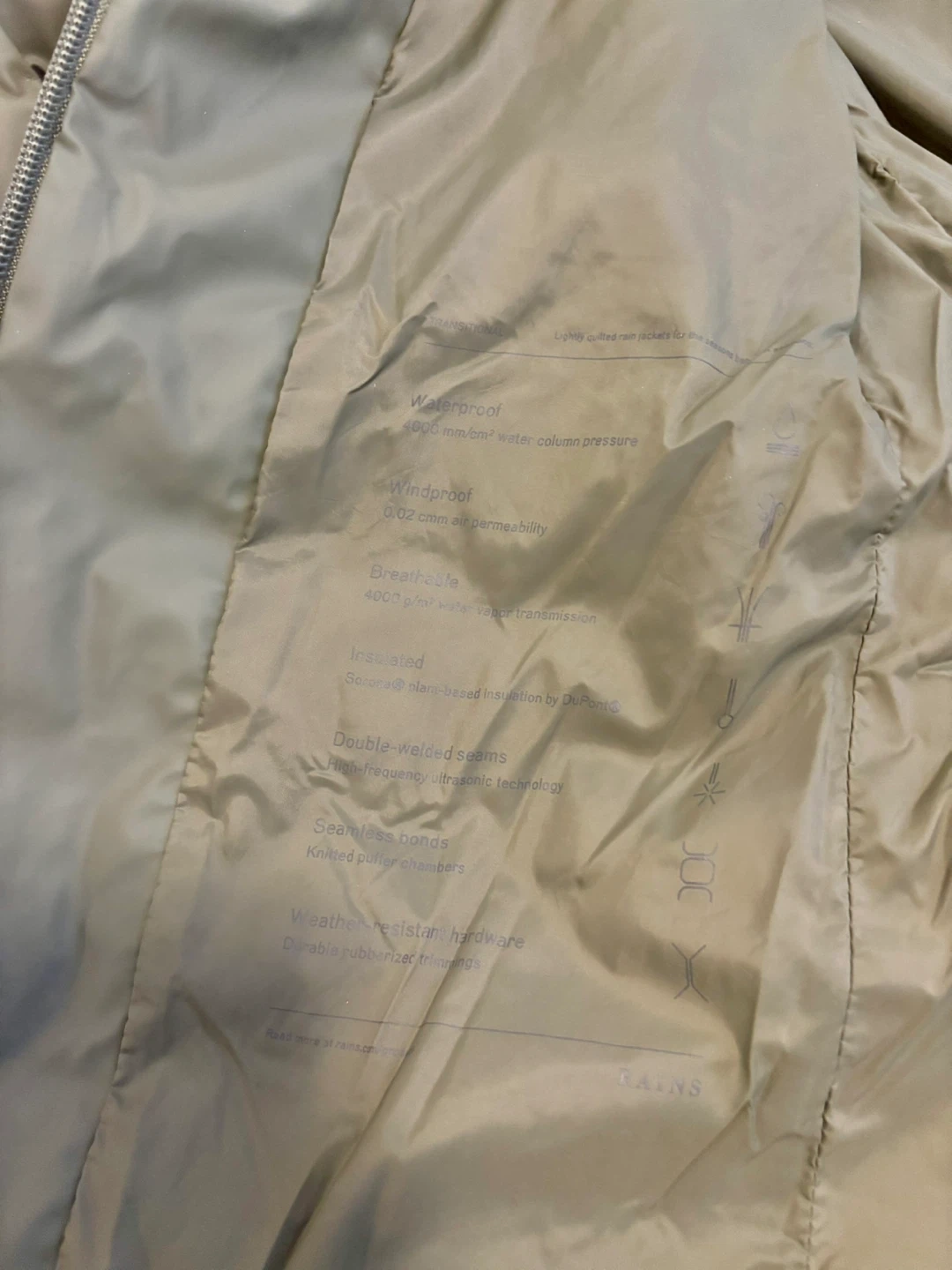 Selling a Rains Padded Liner Jacket in sizeXs/S , fits like US size S, a lovely olive green colour.