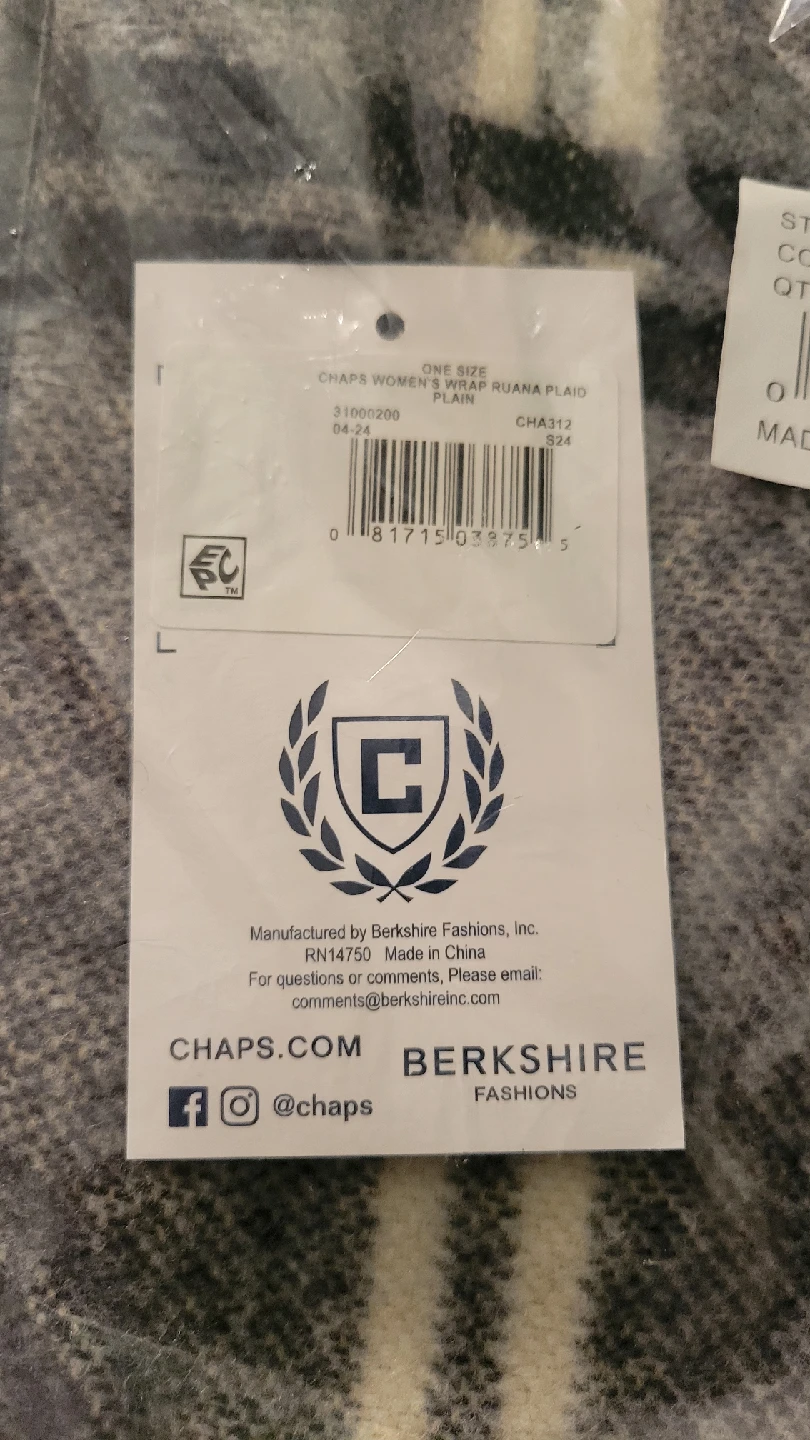 This is a new Chaps Women's Wrap Ruana in a plaid pattern! It's a one-size-fits-all item and is still in its original packaging