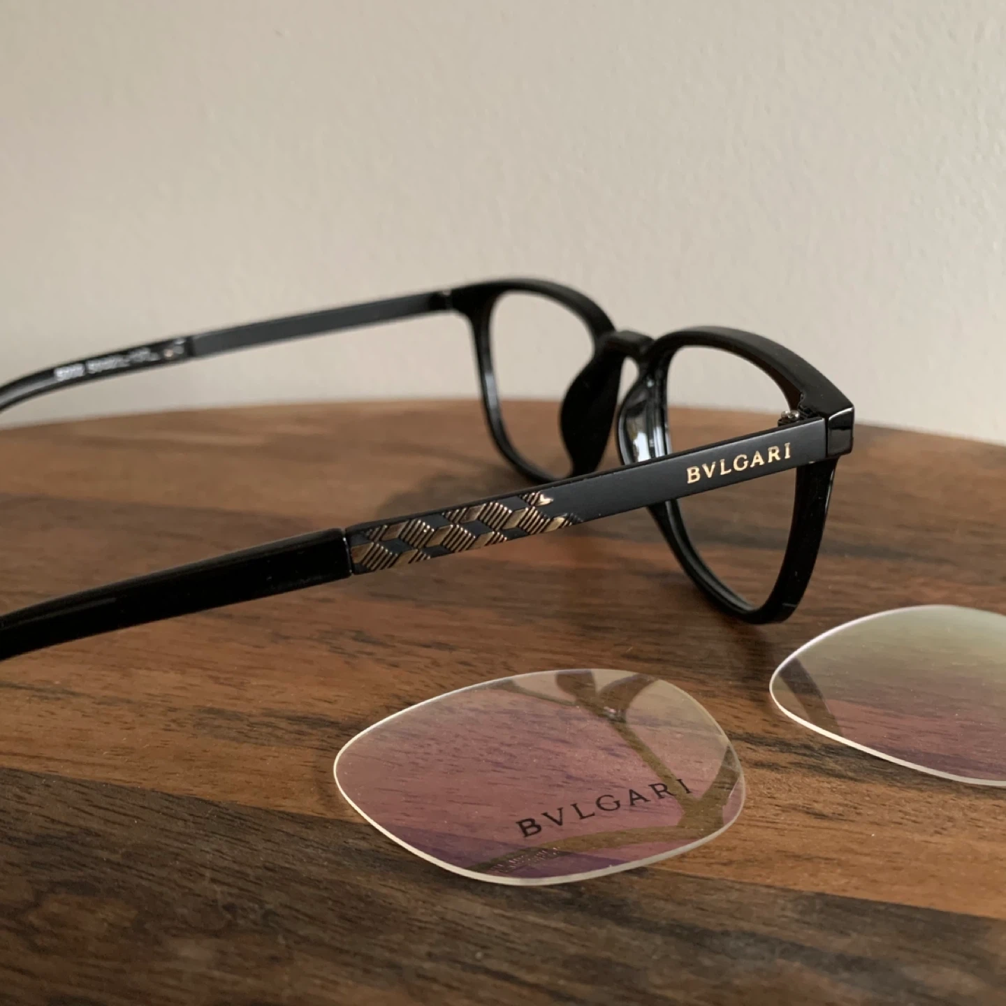 Selling a pair of class A imitation Bulgari eyeglasses in black.