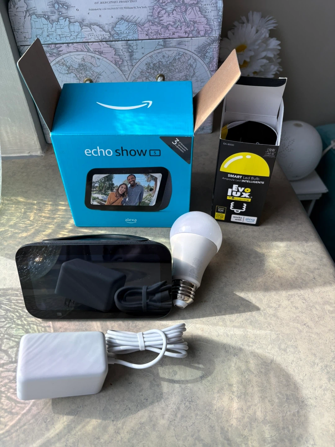 Selling an Amazon Echo Show 5 (3rd Generation) along with a Smart LED Bulb! The Echo Show comes with its original box and charger. Never used. Also included is an Evo Lux Smart LED Bulb. Perfect for setting up a smart home system!