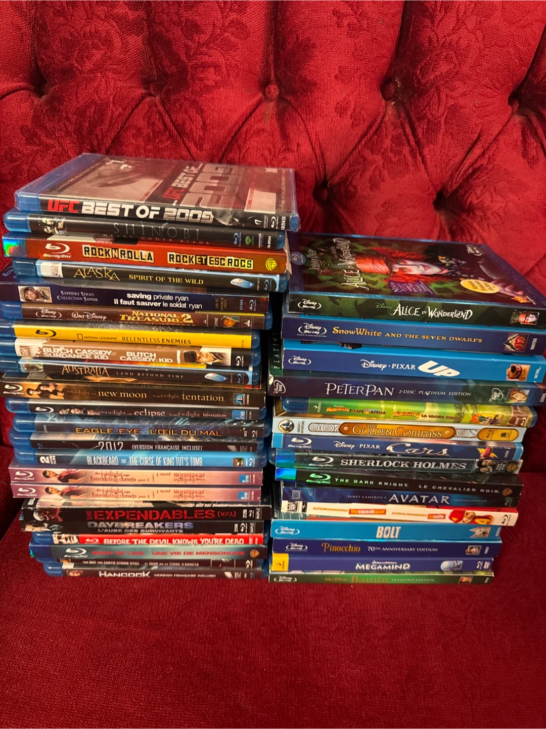Selling a collection of Blu-ray movies! There's a variety of titles, including Disney classics like Alice in Wonderland, Snow White, Peter Pan, and more! Also includes action movies and other genres. Great for movie nights!